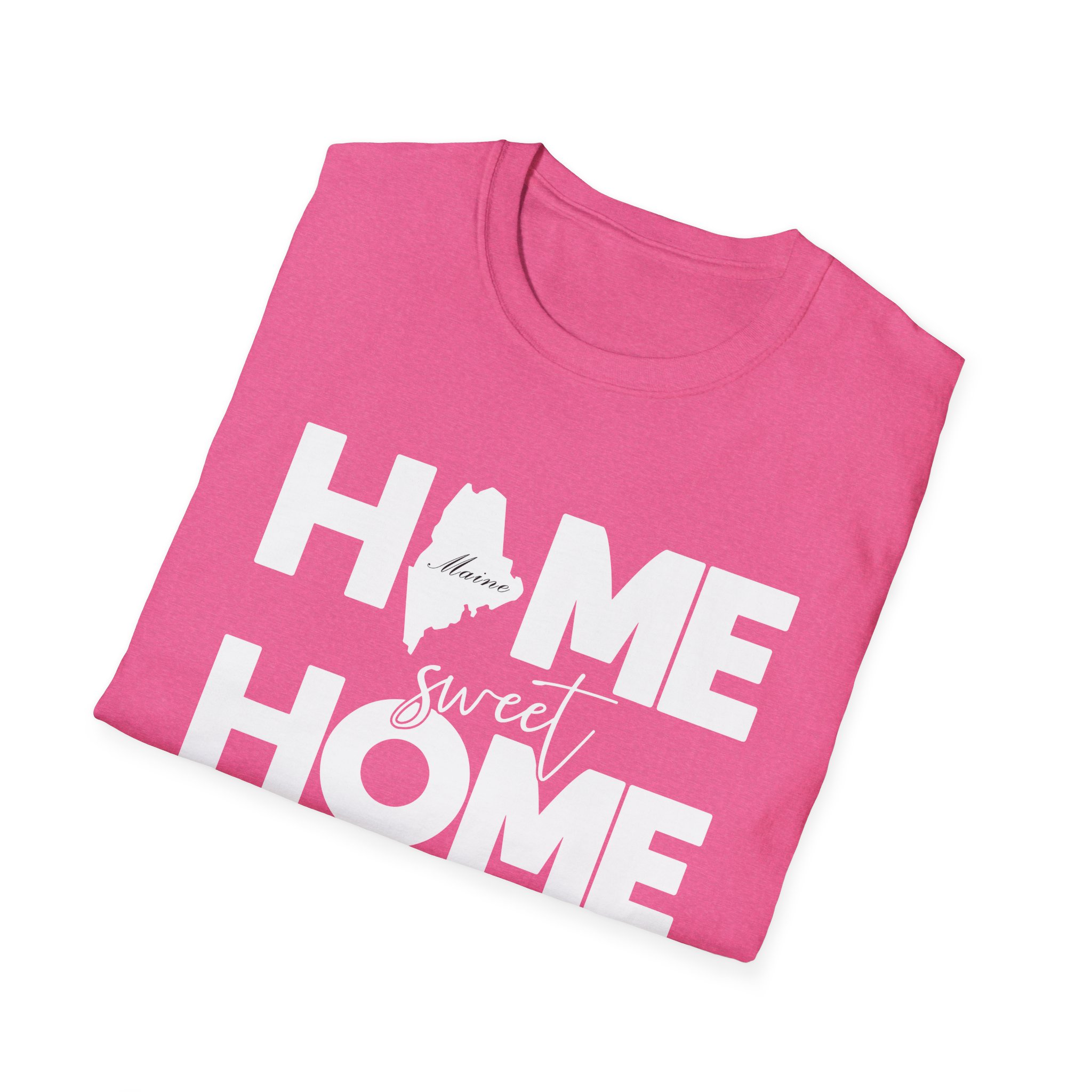 Home Sweet Home Maine White Design on Gildan Softstyle® 64000 redefines casual comfort with a modern unisex cut and ultra-soft materials. Solid colors are 100% cotton, while heathers and sport grey use polyester blends for added durability. Shoulders are reinforced with twill tape, there are no side seams for a smoother fit, and the ribbed-knit collar helps prevent curling. Whether for printing or everyday wear, the Gildan 64000 stands out as a dependable wardrobe staple.