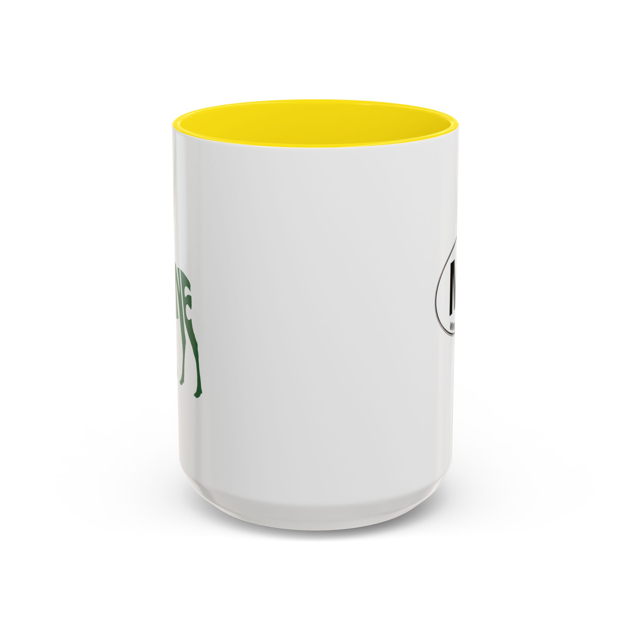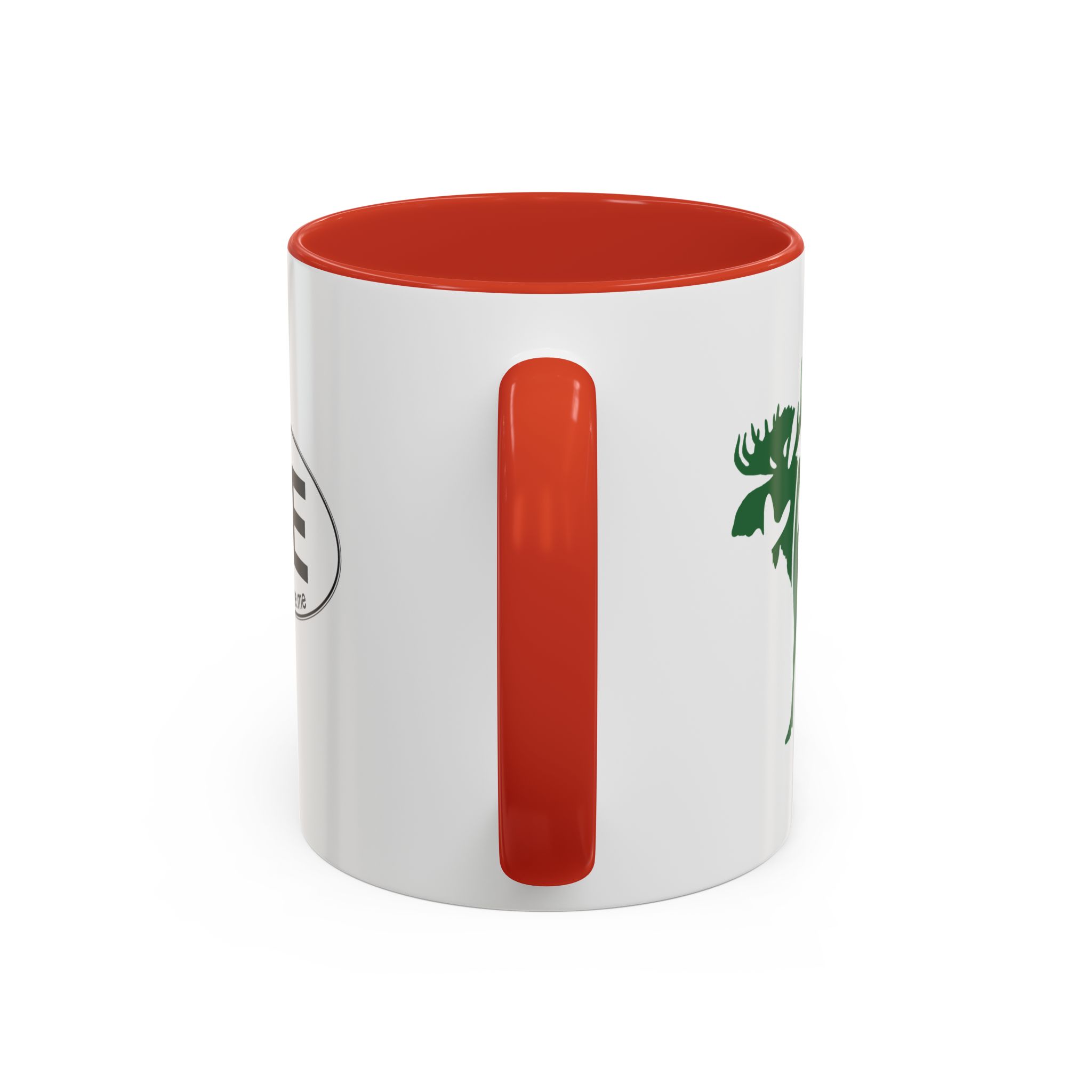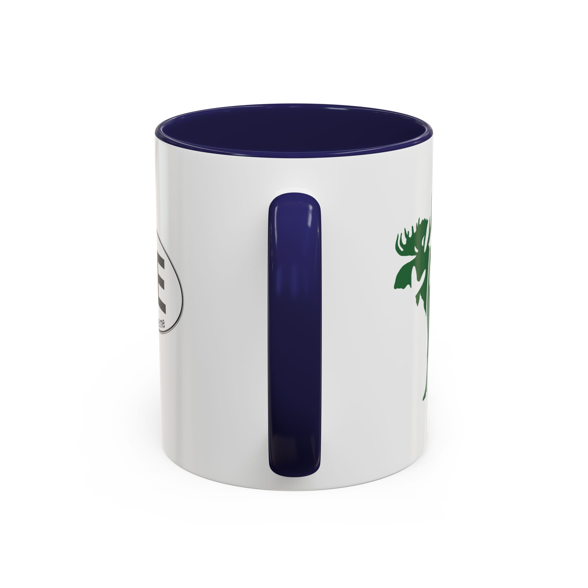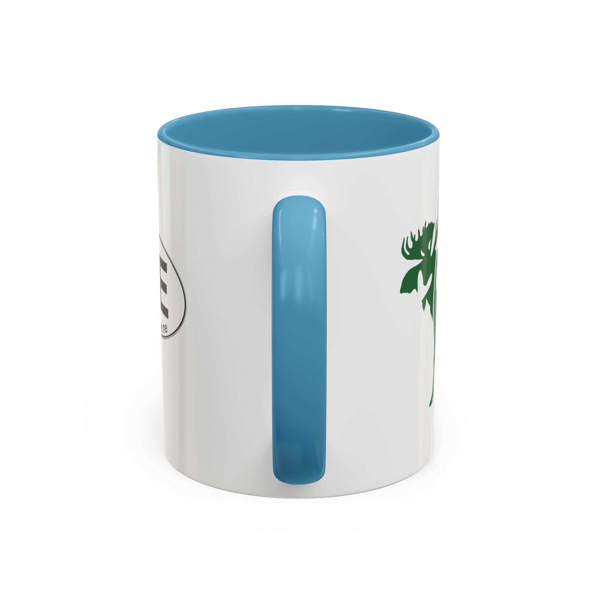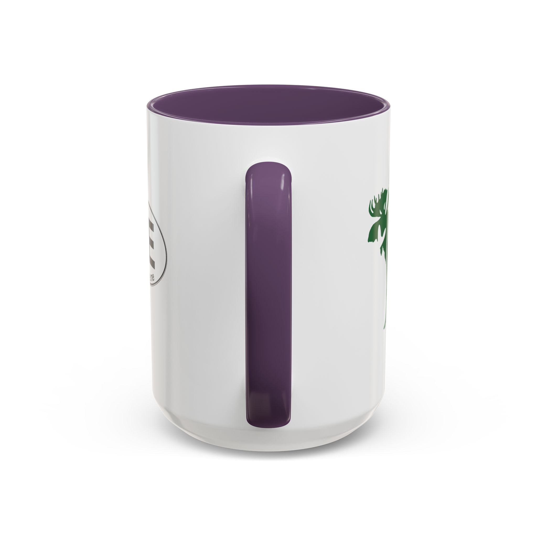 Maine Green Moose accented ceramic mug. This mug brings the perfect blend of style and functionality to elevate your coffee or tea ritual. Available in two generous sizes, 11oz (0.33 l) and 15oz (0.44 l), this mug offers ample space for your favorite brew. Made with white ceramic and sporting a sleek glossy finish with eye-catching contrast, this mug is a bliss both to use and to look at. The ergonomic C-shaped handle provides a comfortable grip, while the lead and BPA-free construction guarantee peace of mind with every sip.