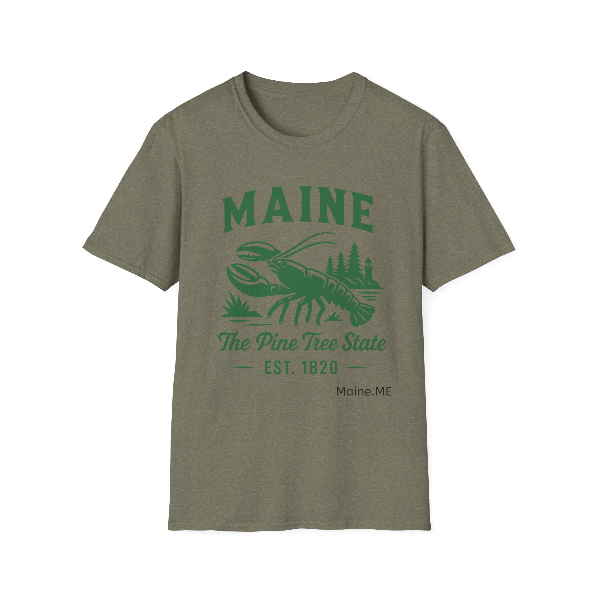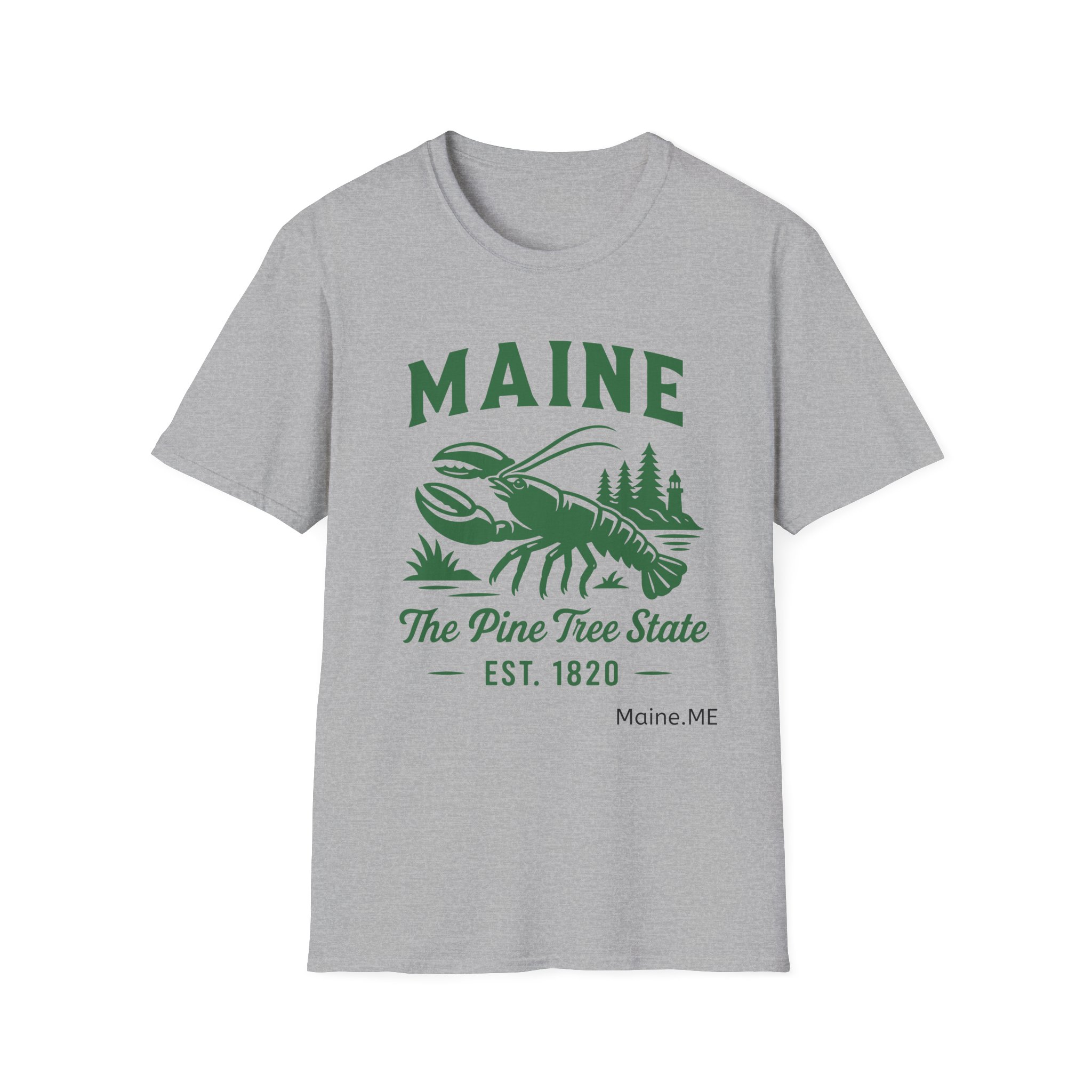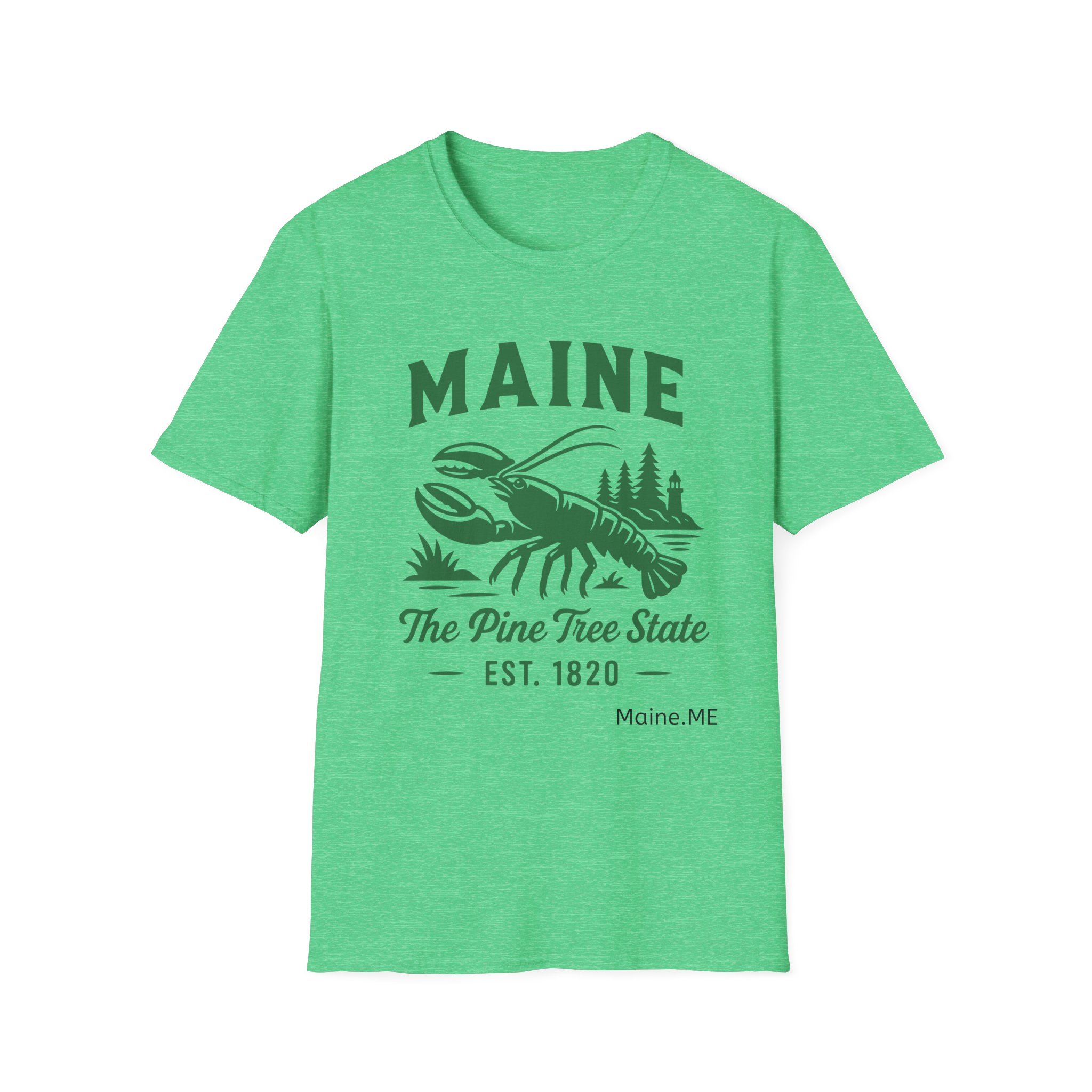 Maine Lobster Est. 1820 Green Print on The Gildan Softstyle® 64000 redefines casual comfort with a modern unisex cut and ultra-soft materials. Solid colors are 100% cotton, while heathers and sport grey use polyester blends for added durability. Shoulders are reinforced with twill tape, there are no side seams for a smoother fit, and the ribbed-knit collar helps prevent curling. Whether for printing or everyday wear, the Gildan 64000 stands out as a dependable wardrobe staple.