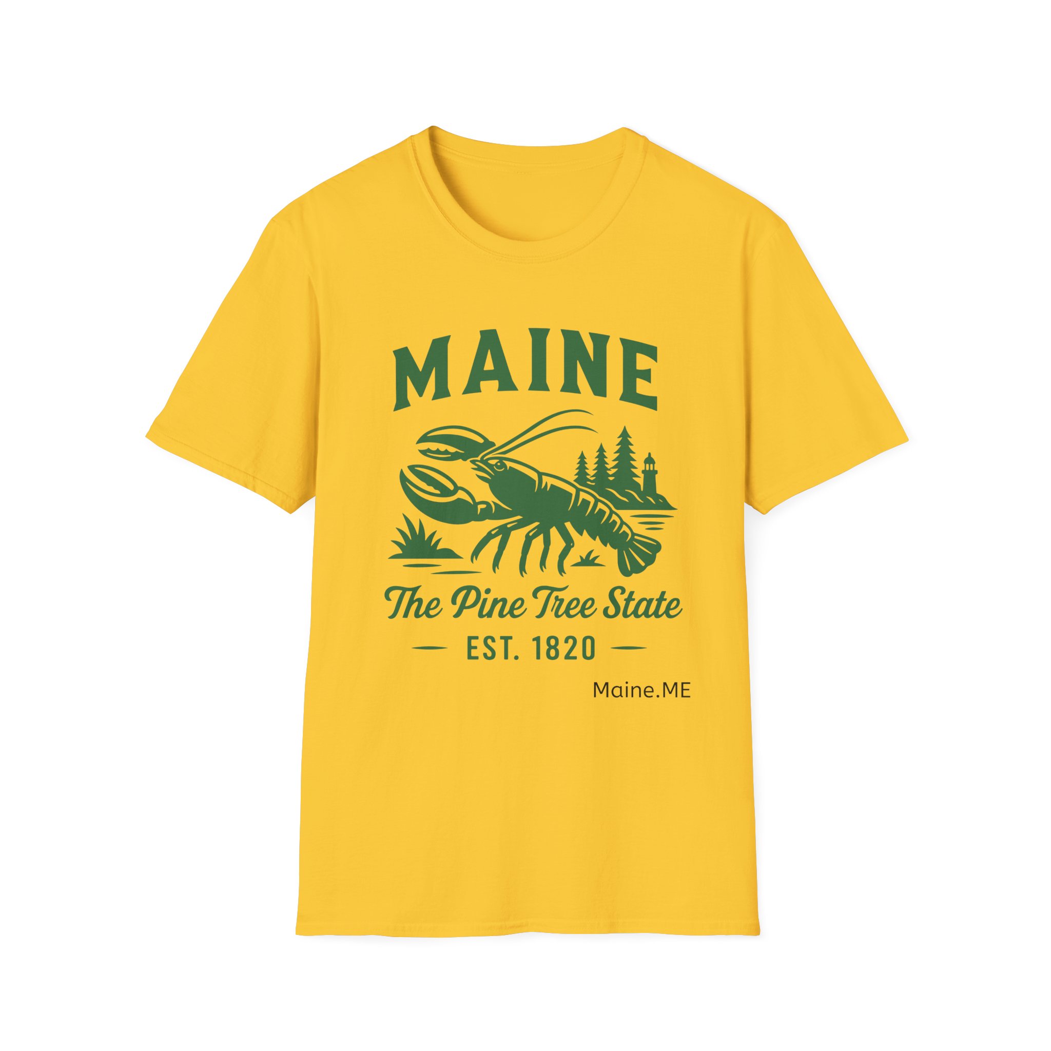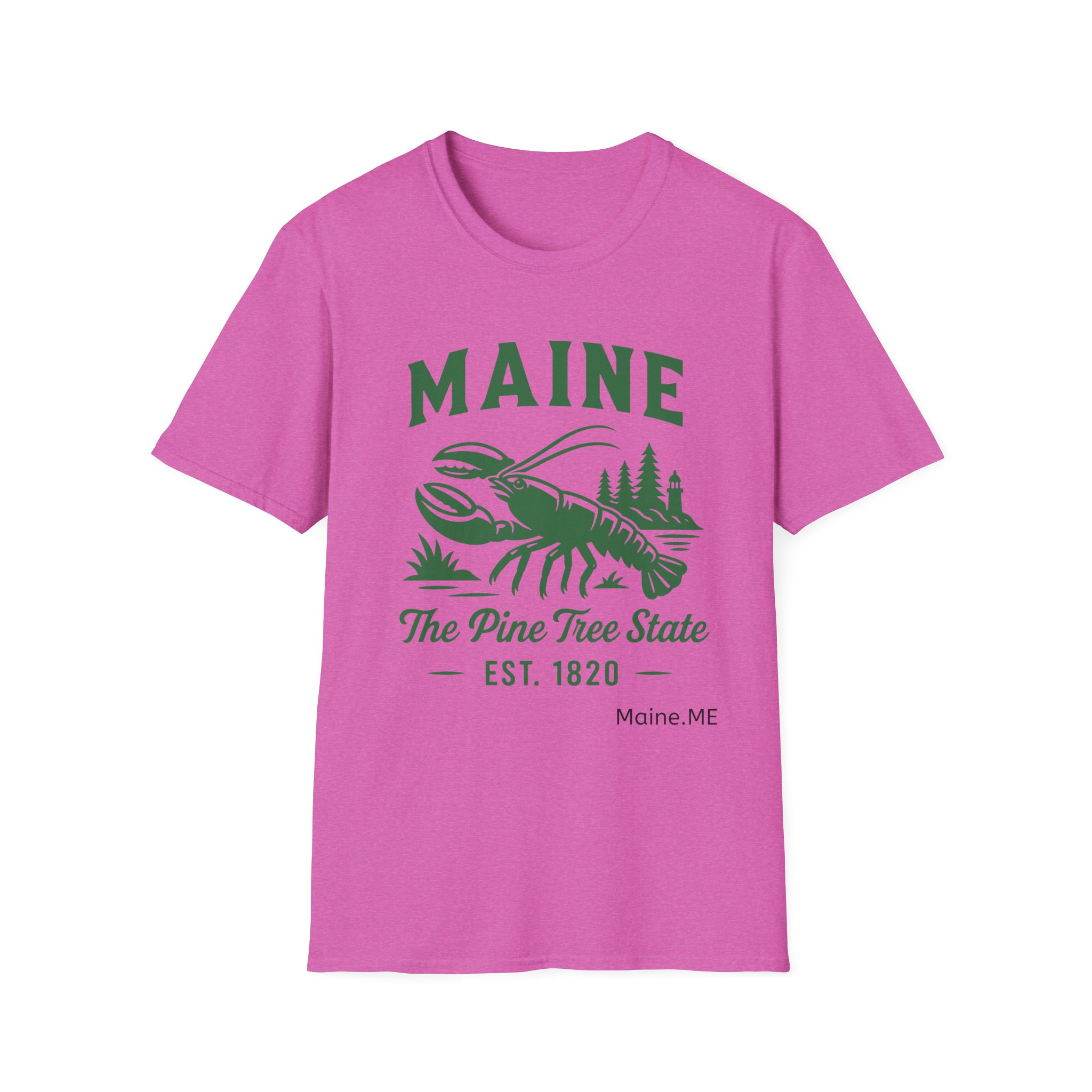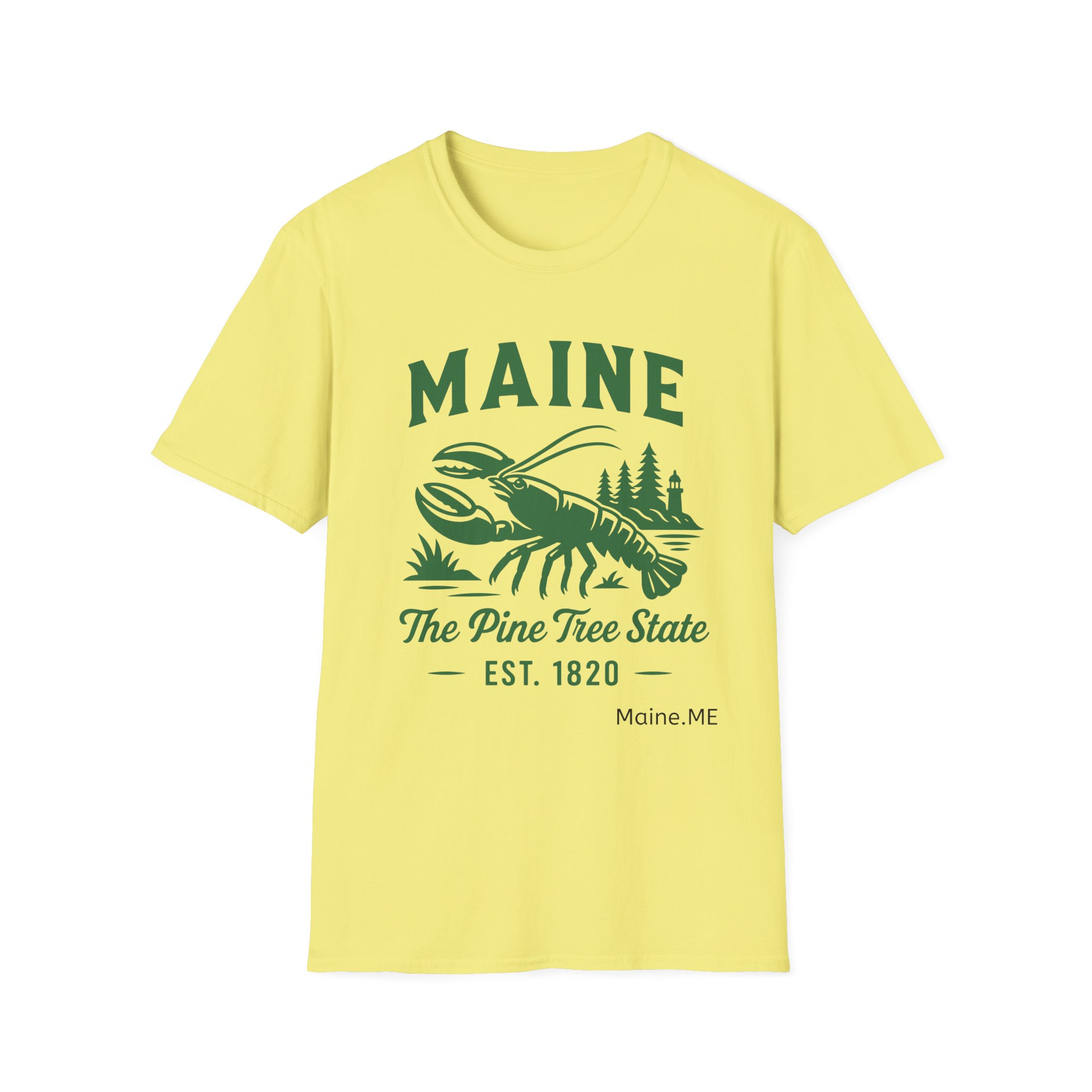 Maine Lobster Est. 1820 Green Print on The Gildan Softstyle® 64000 redefines casual comfort with a modern unisex cut and ultra-soft materials. Solid colors are 100% cotton, while heathers and sport grey use polyester blends for added durability. Shoulders are reinforced with twill tape, there are no side seams for a smoother fit, and the ribbed-knit collar helps prevent curling. Whether for printing or everyday wear, the Gildan 64000 stands out as a dependable wardrobe staple.