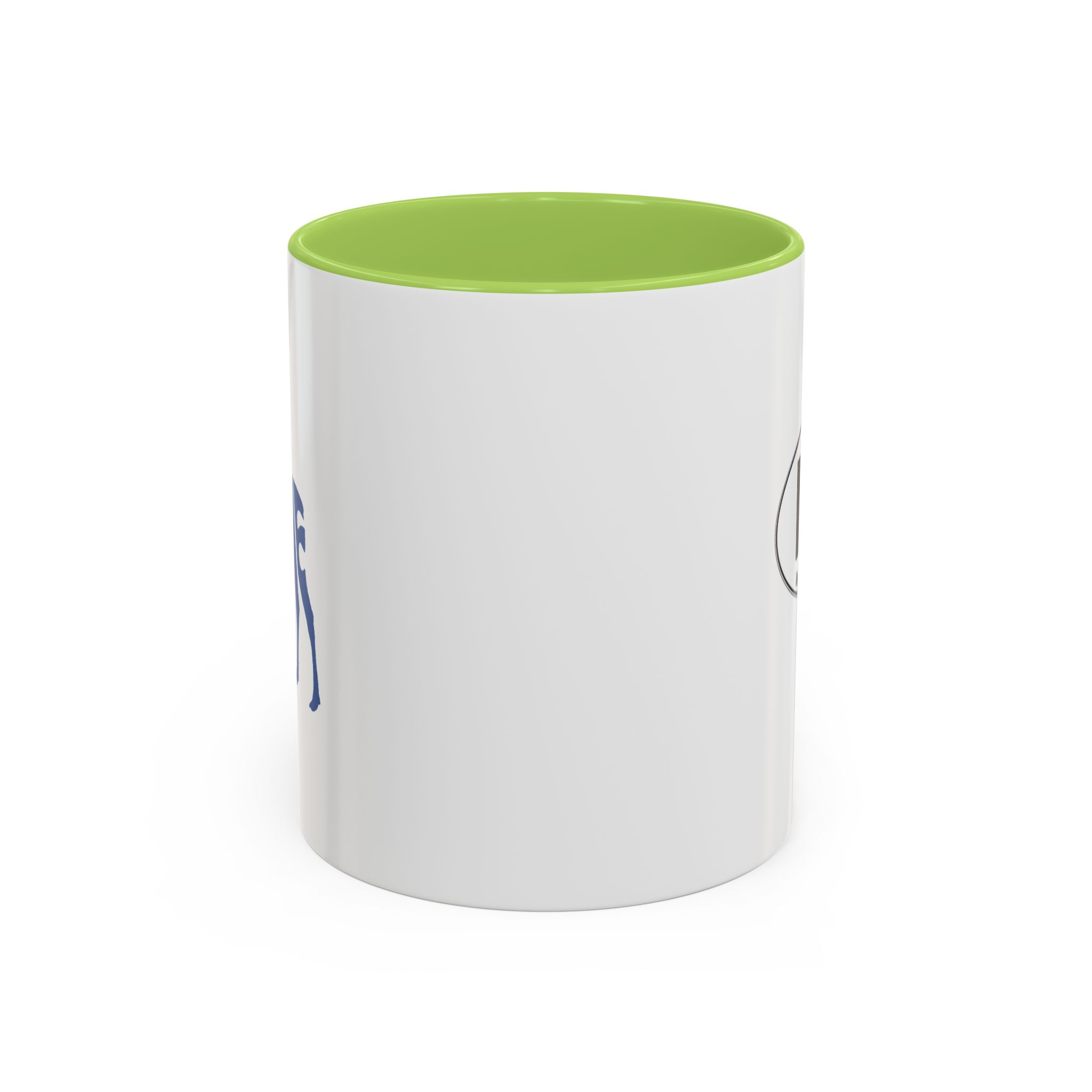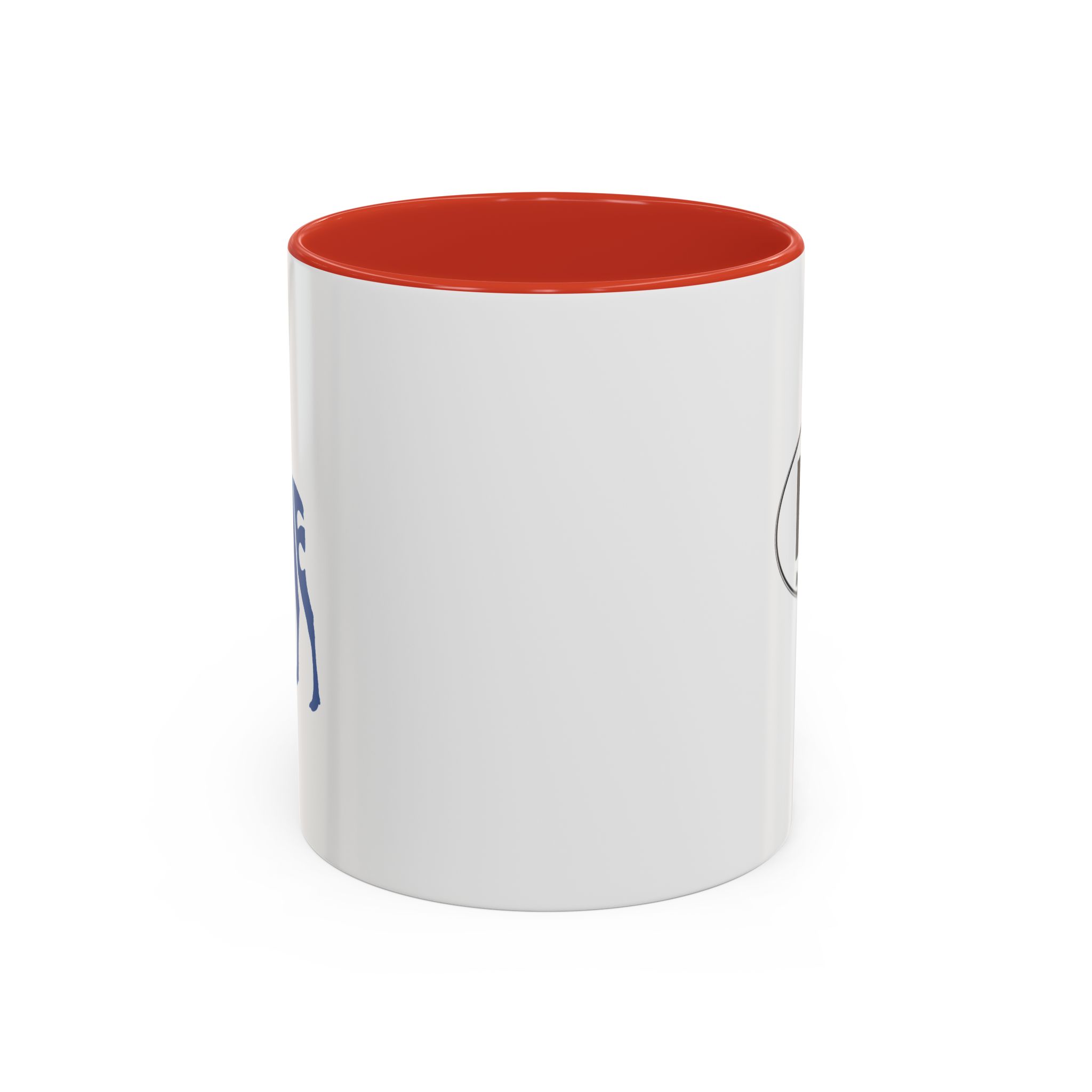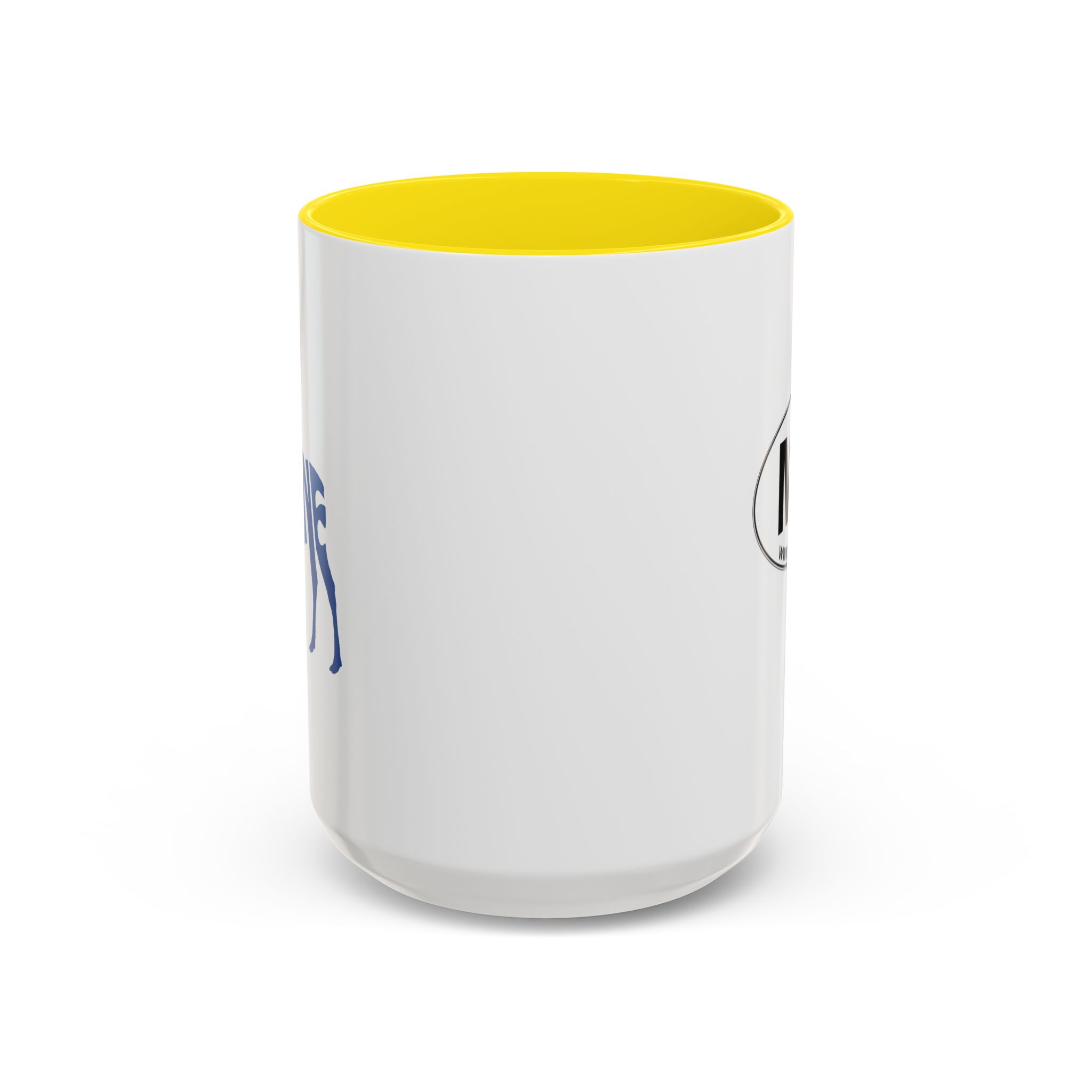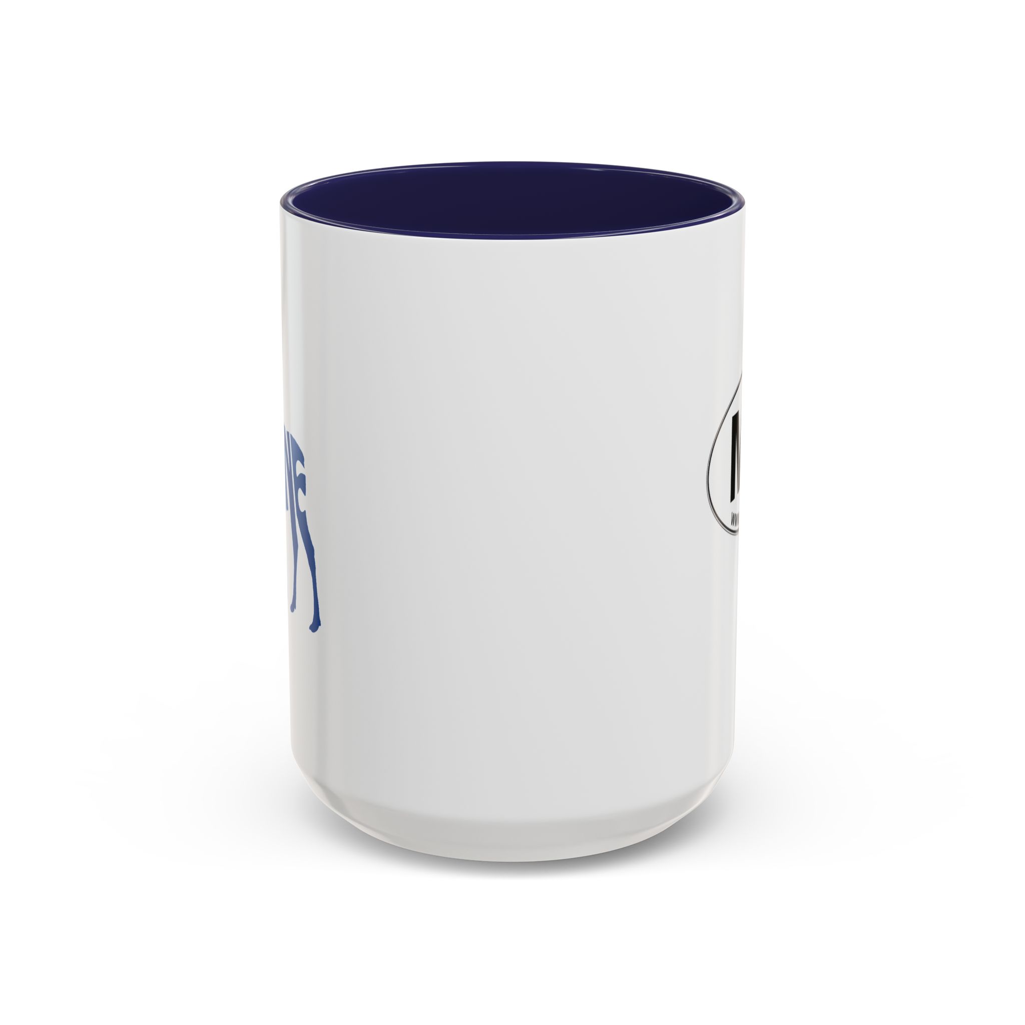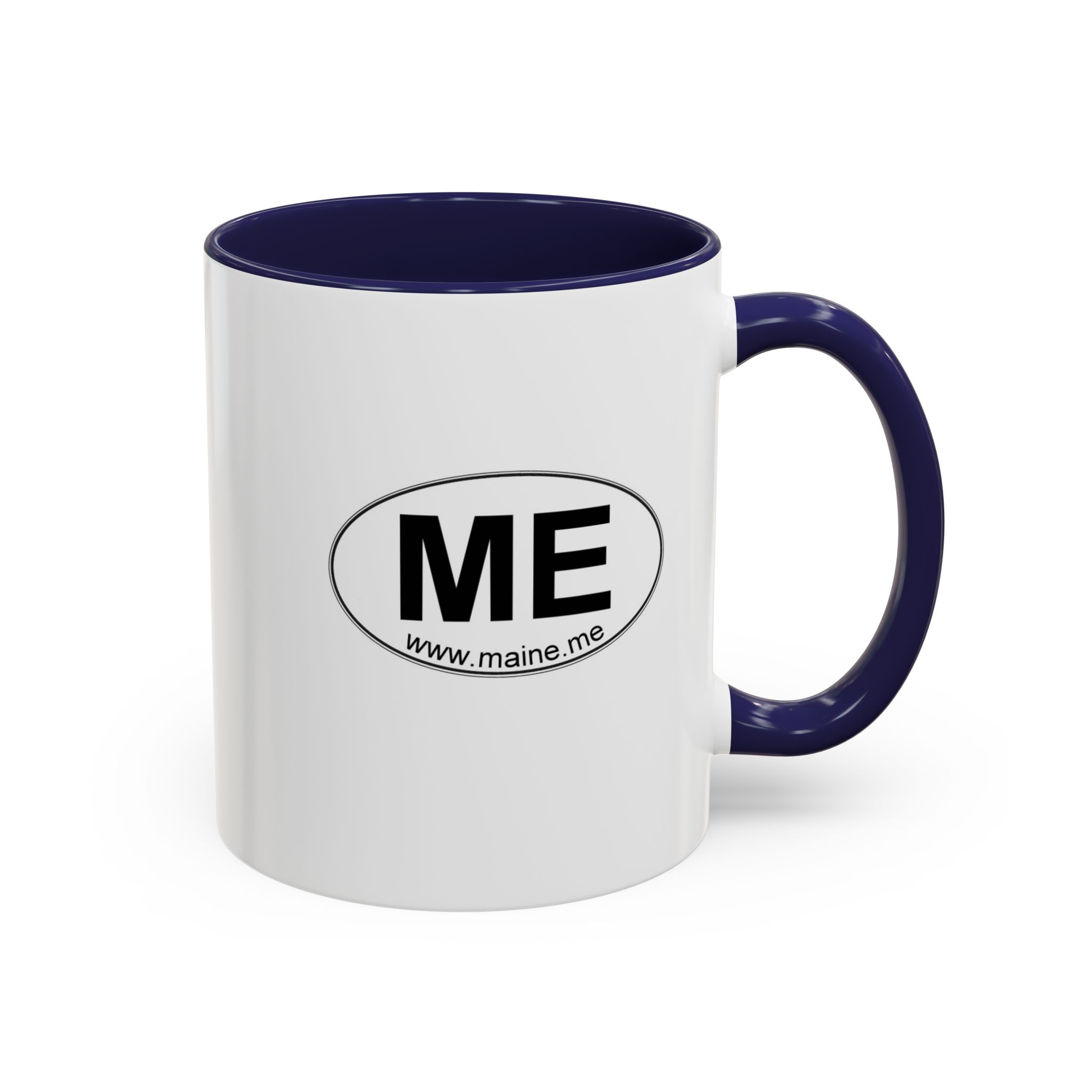 Maine.ME Blue Moose accented ceramic mug. This mug brings the perfect blend of style and functionality to elevate your coffee or tea ritual. Available in two generous sizes, 11oz (0.33 l) and 15oz (0.44 l), this mug offers ample space for your favorite brew. Made with white ceramic and sporting a sleek glossy finish with eye-catching contrast, this mug is a bliss both to use and to look at. The ergonomic C-shaped handle provides a comfortable grip, while the lead and BPA-free construction guarantee peace of mind with every sip.