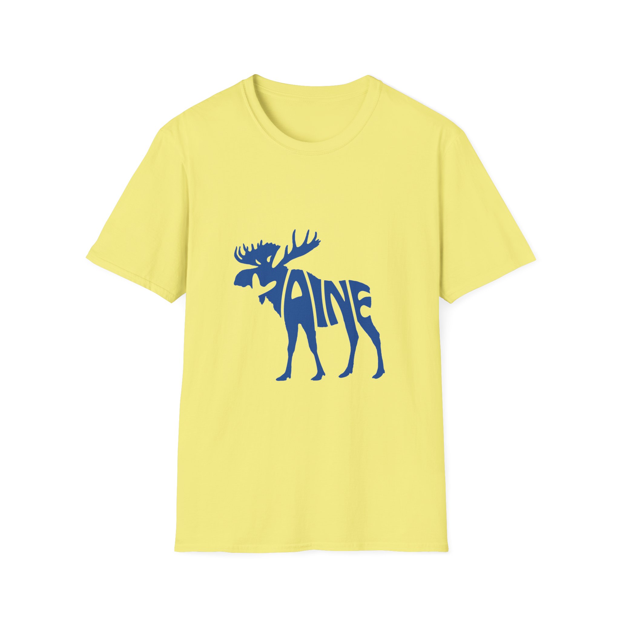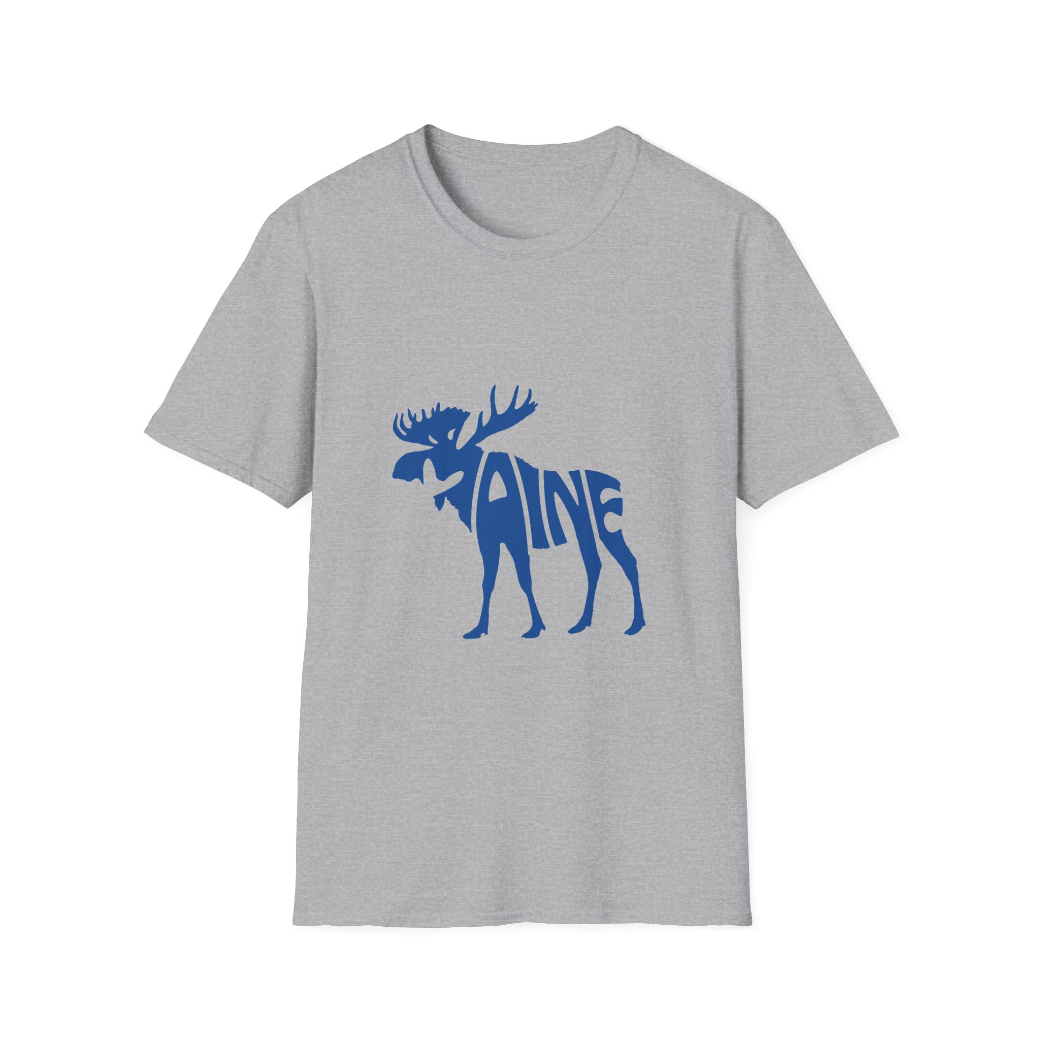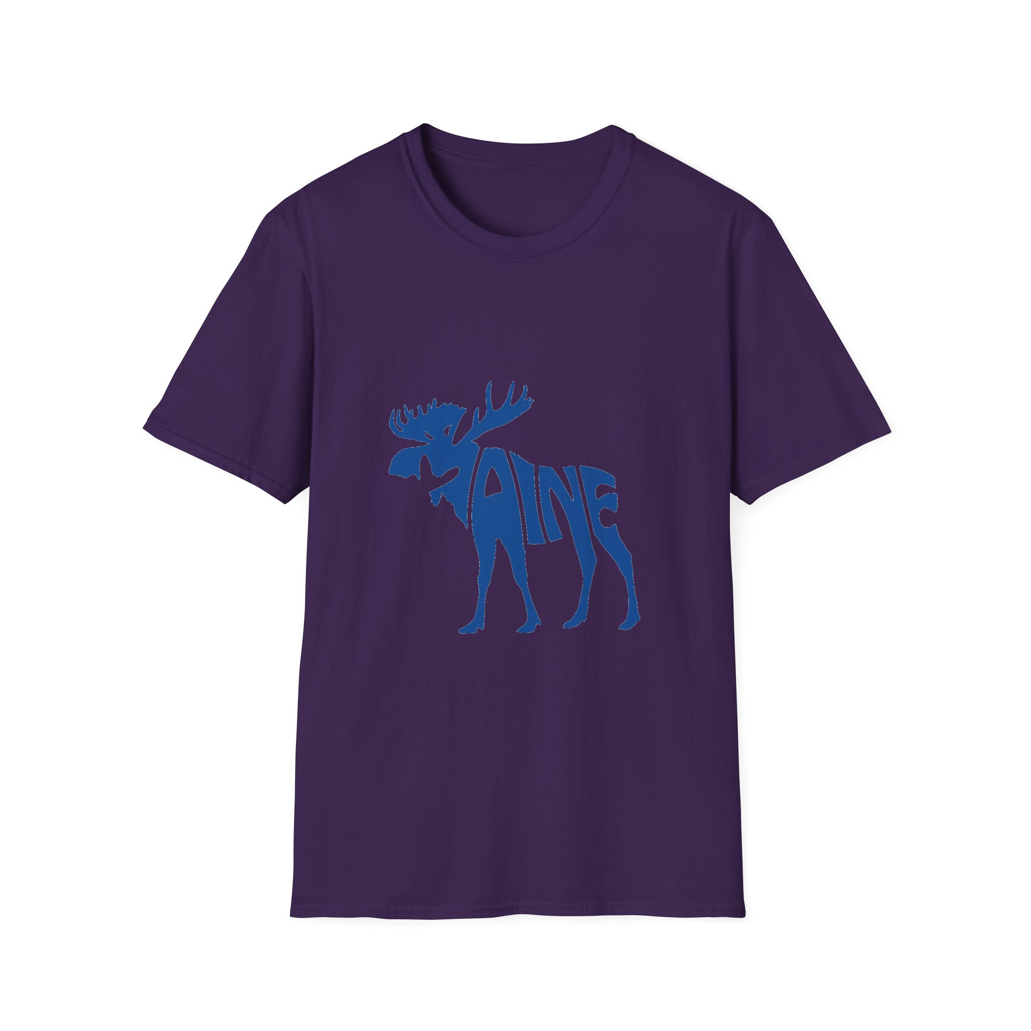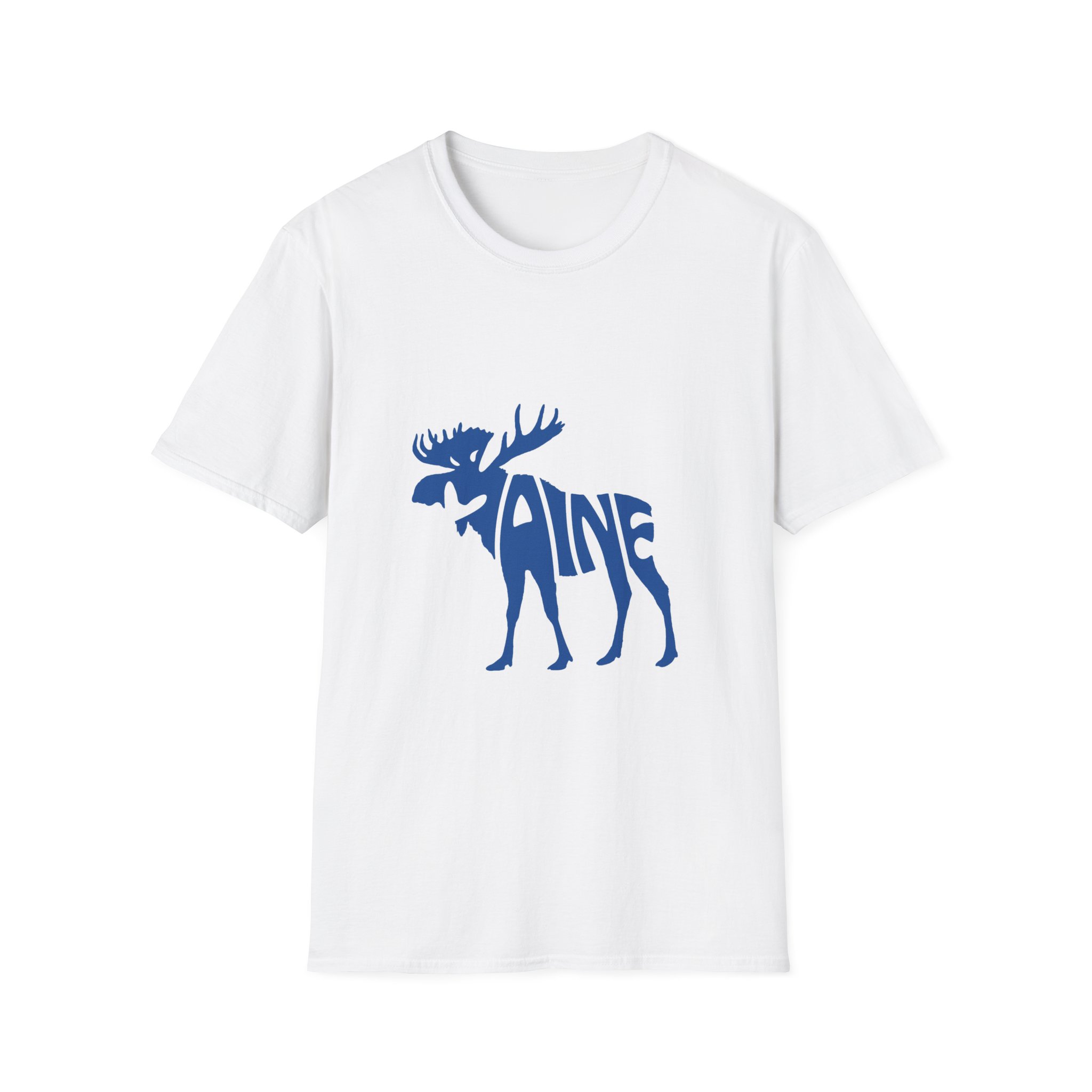 Maine Moose Blue Design on The Gildan Softstyle® 64000 redefines casual comfort with a modern unisex cut and ultra-soft materials. Solid colors are 100% cotton, while heathers and sport grey use polyester blends for added durability. Shoulders are reinforced with twill tape, there are no side seams for a smoother fit, and the ribbed-knit collar helps prevent curling. Whether for printing or everyday wear, the Gildan 64000 stands out as a dependable wardrobe staple.