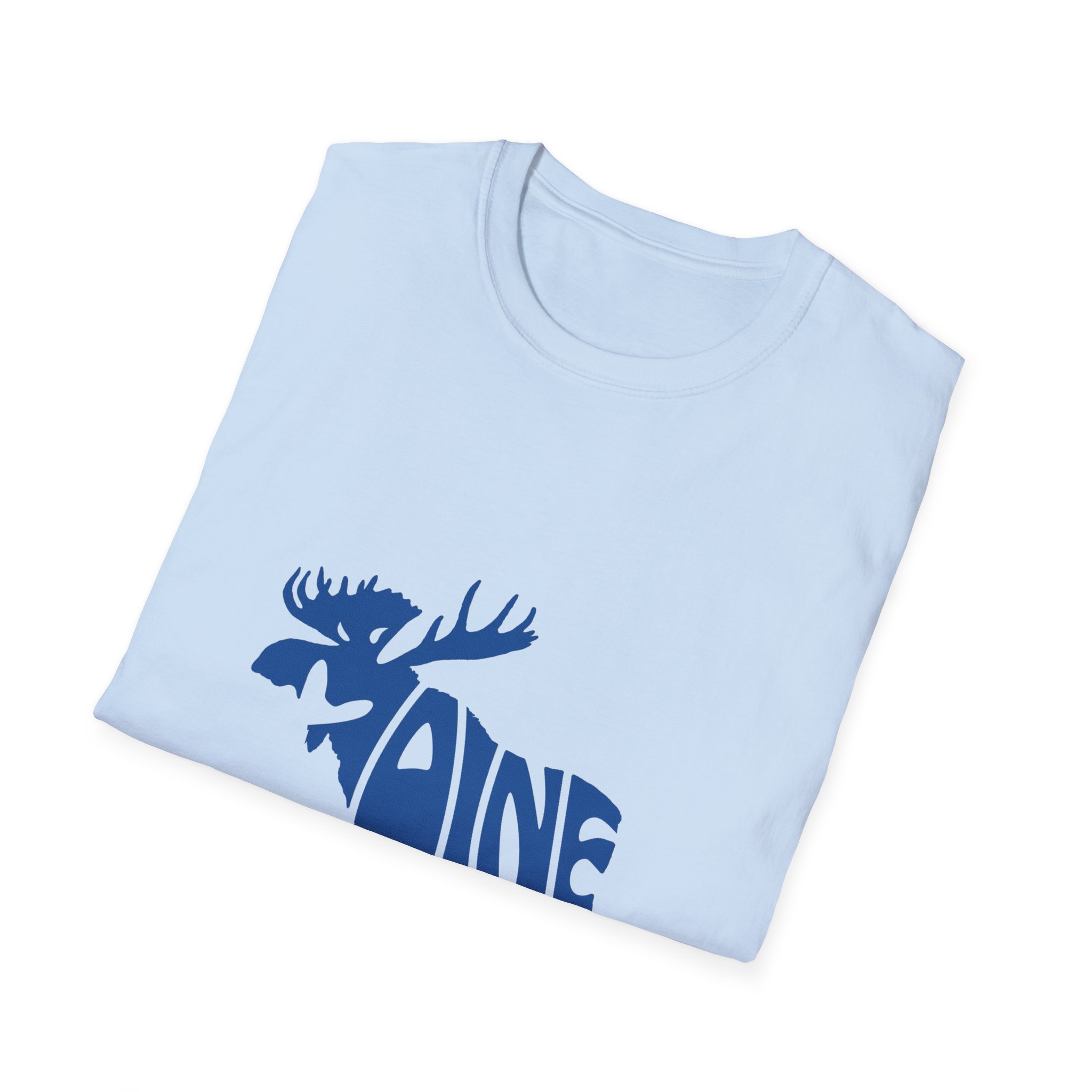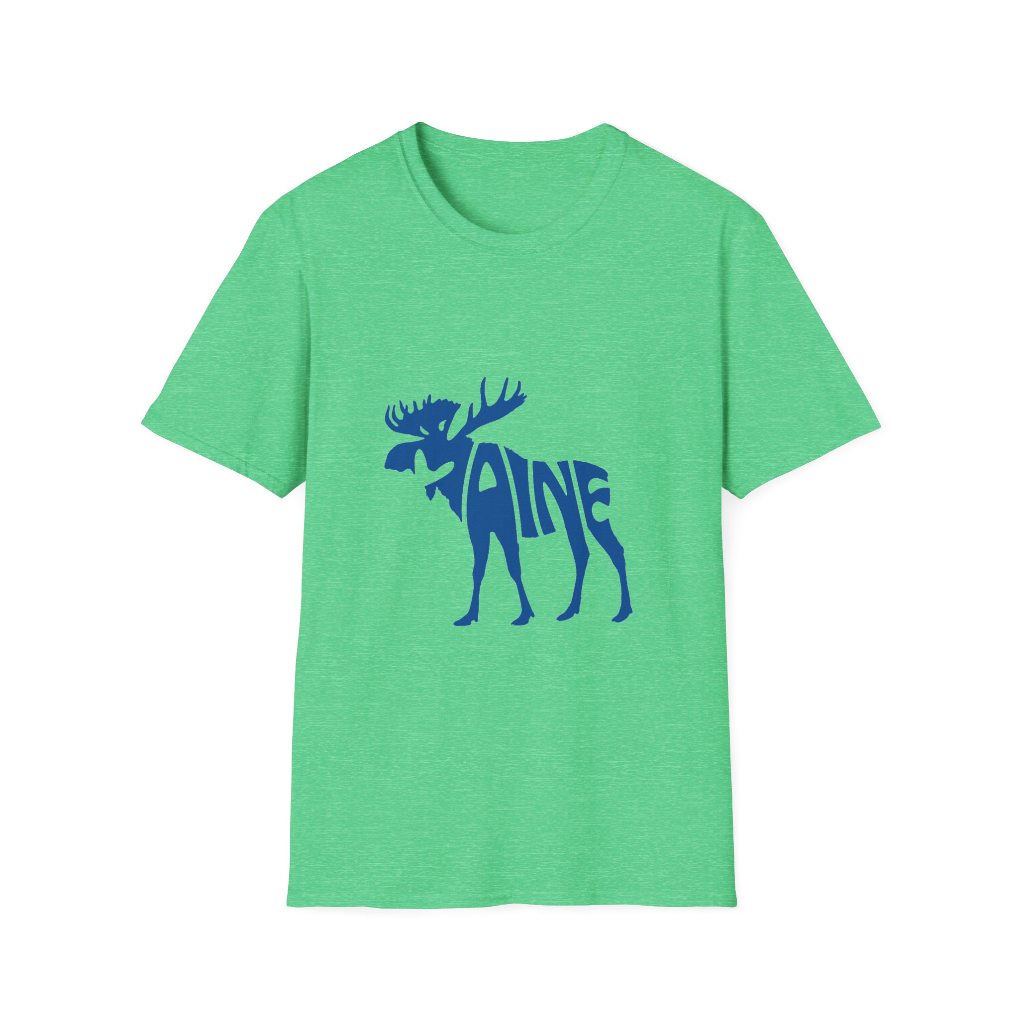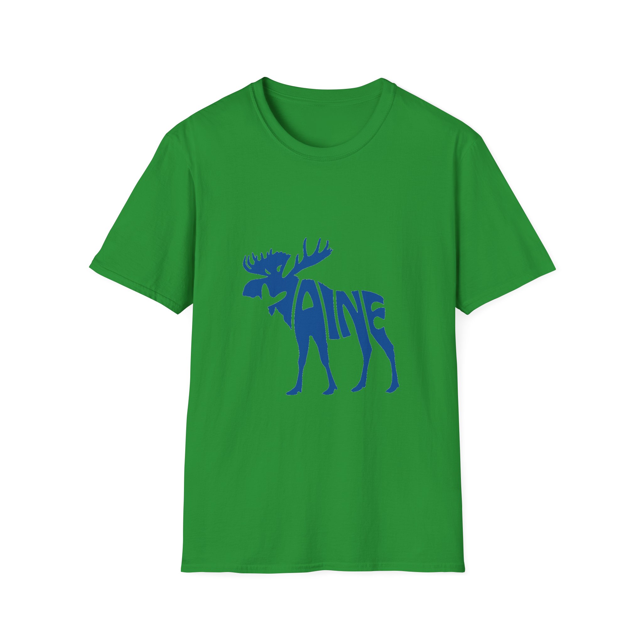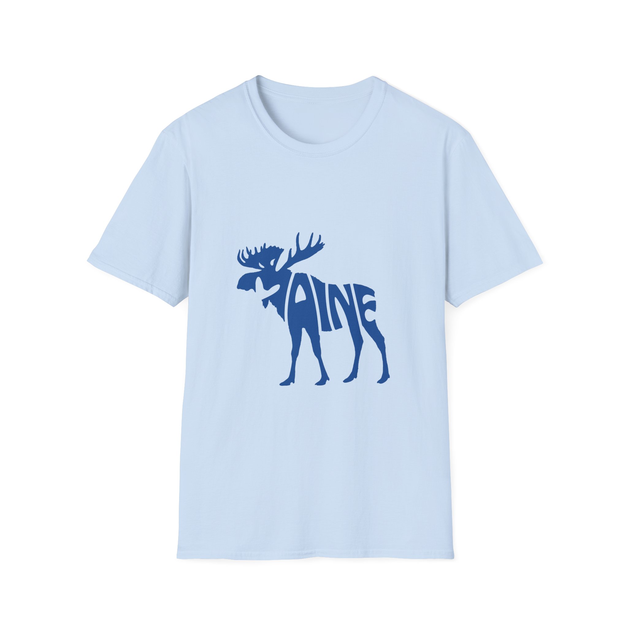 Maine Moose Blue Design on The Gildan Softstyle® 64000 redefines casual comfort with a modern unisex cut and ultra-soft materials. Solid colors are 100% cotton, while heathers and sport grey use polyester blends for added durability. Shoulders are reinforced with twill tape, there are no side seams for a smoother fit, and the ribbed-knit collar helps prevent curling. Whether for printing or everyday wear, the Gildan 64000 stands out as a dependable wardrobe staple.