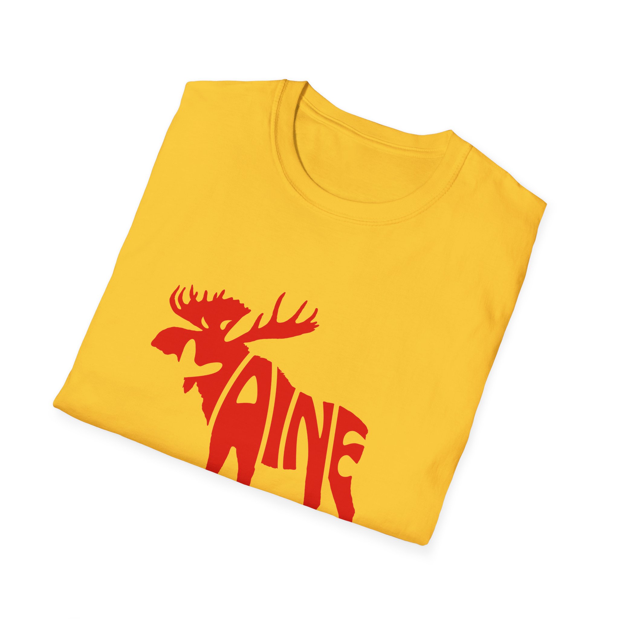 Maine Moose Red Design on The Gildan Softstyle® 64000 redefines casual comfort with a modern unisex cut and ultra-soft materials. Solid colors are 100% cotton, while heathers and sport grey use polyester blends for added durability. Shoulders are reinforced with twill tape, there are no side seams for a smoother fit, and the ribbed-knit collar helps prevent curling. Whether for printing or everyday wear, the Gildan 64000 stands out as a dependable wardrobe staple.