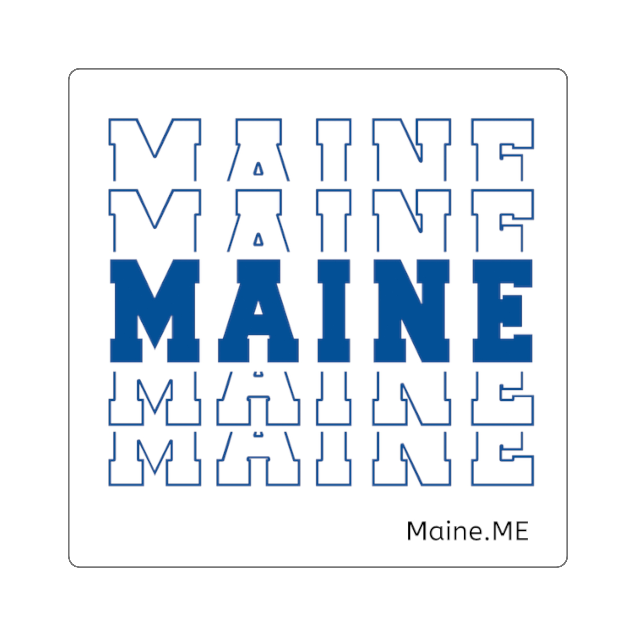 Stacked MAINE Blue Words Square Sticker. The clean, crisp edges and simple-but-elegant look make this the most straightforward and popular option.