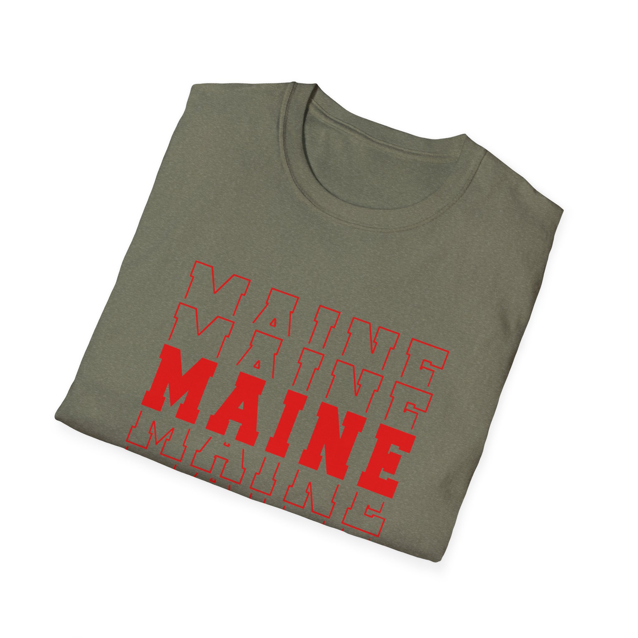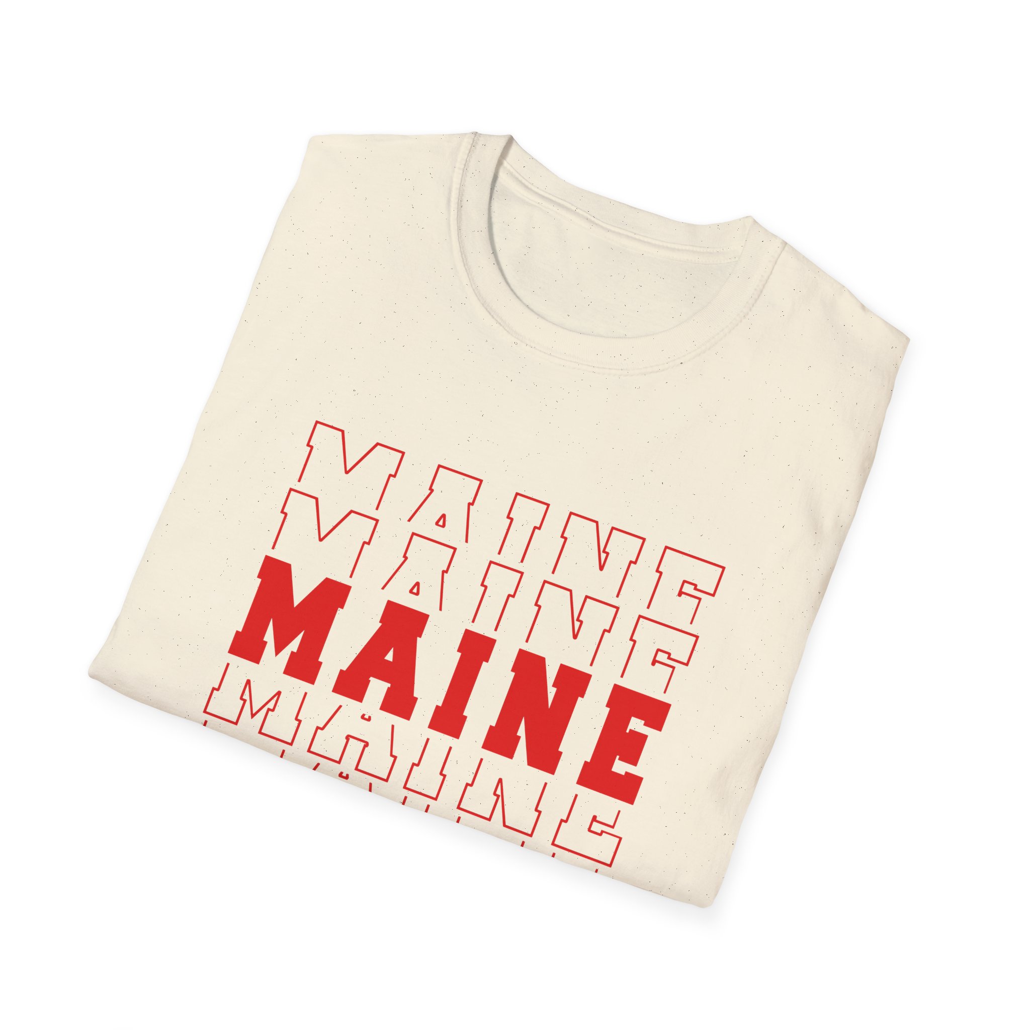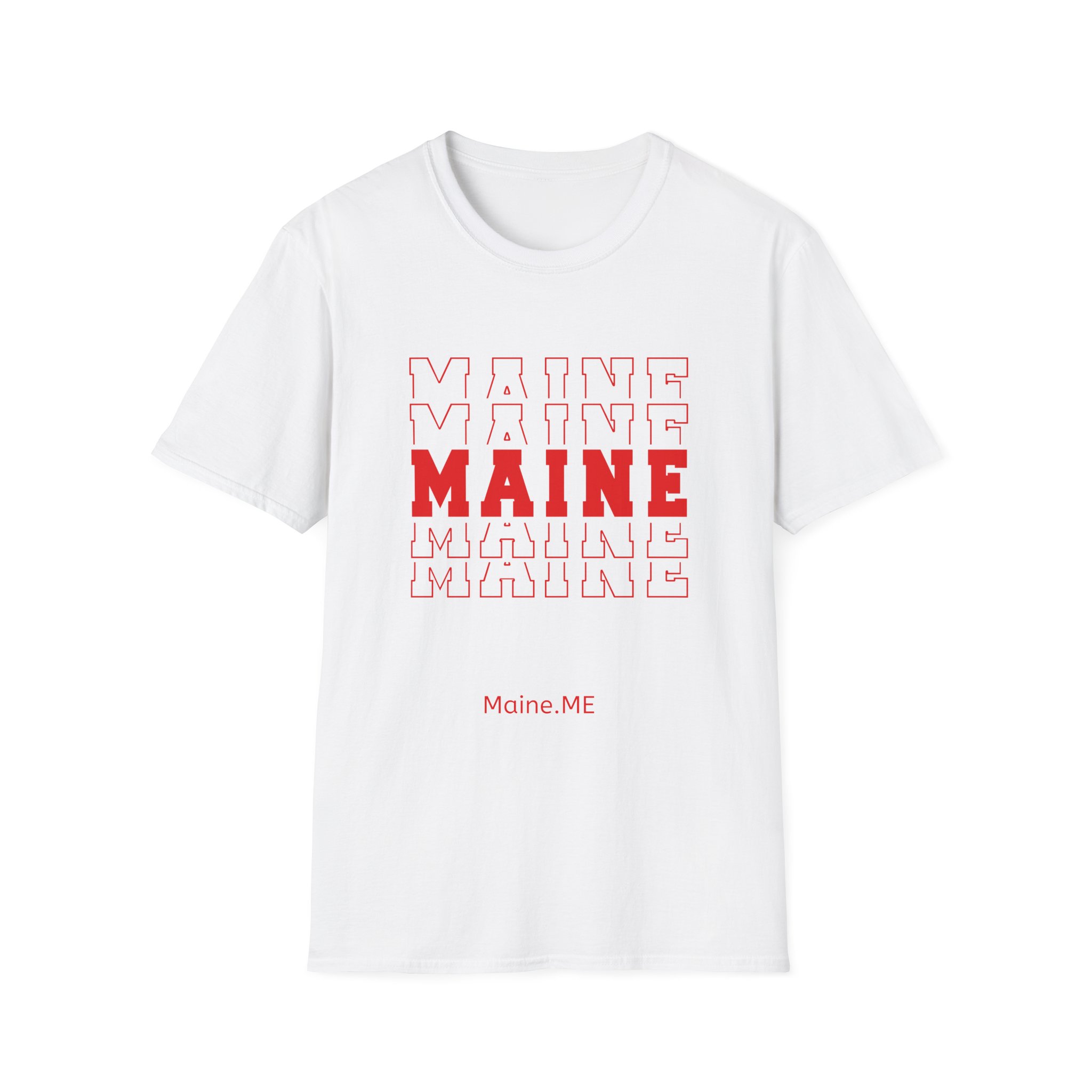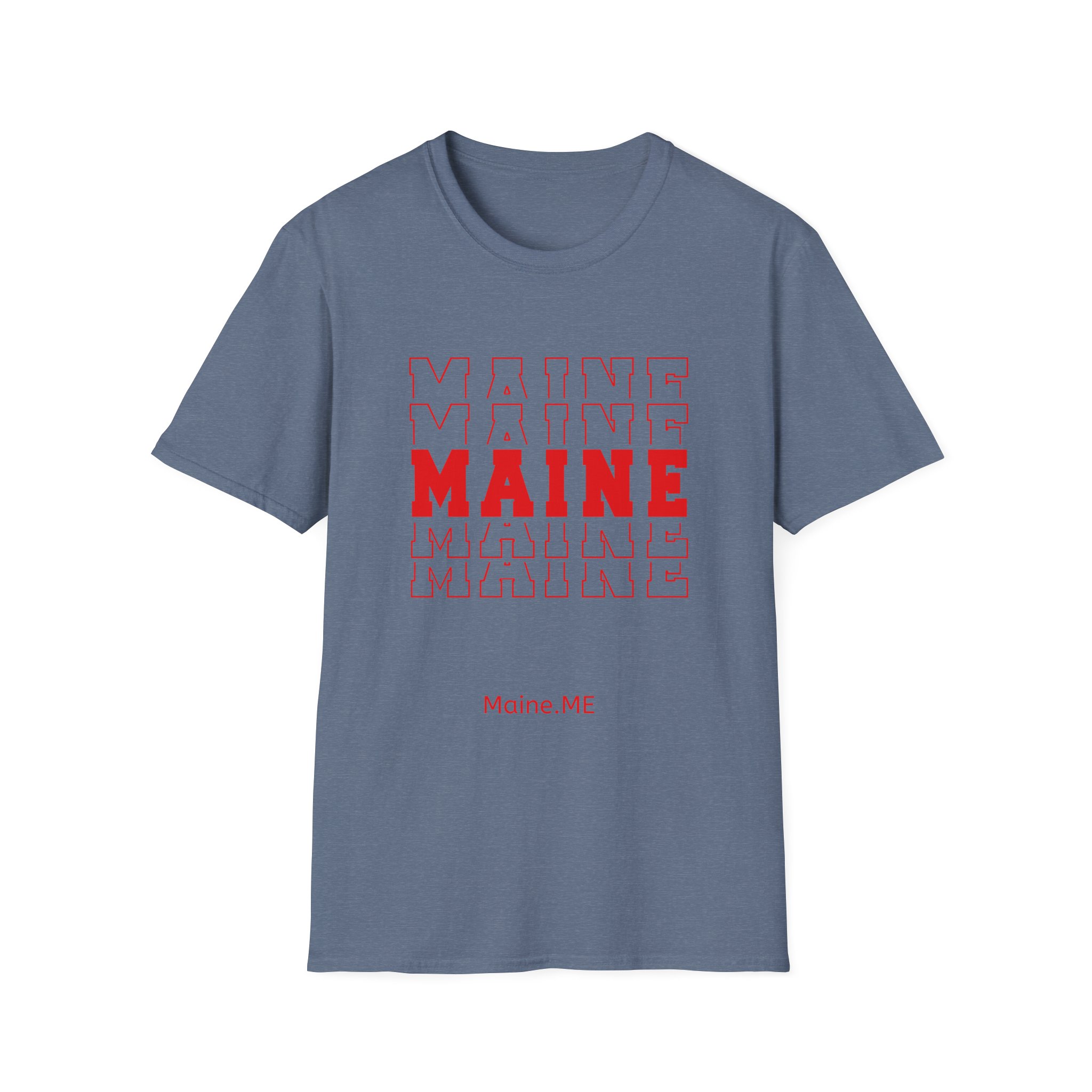 Stacked MAINE Red Words on Gildan Softstyle® 64000 redefines casual comfort with a modern unisex cut and ultra-soft materials. Solid colors are 100% cotton, while heathers and sport grey use polyester blends for added durability. Shoulders are reinforced with twill tape, there are no side seams for a smoother fit, and the ribbed-knit collar helps prevent curling. Whether for printing or everyday wear, the Gildan 64000 stands out as a dependable wardrobe staple.