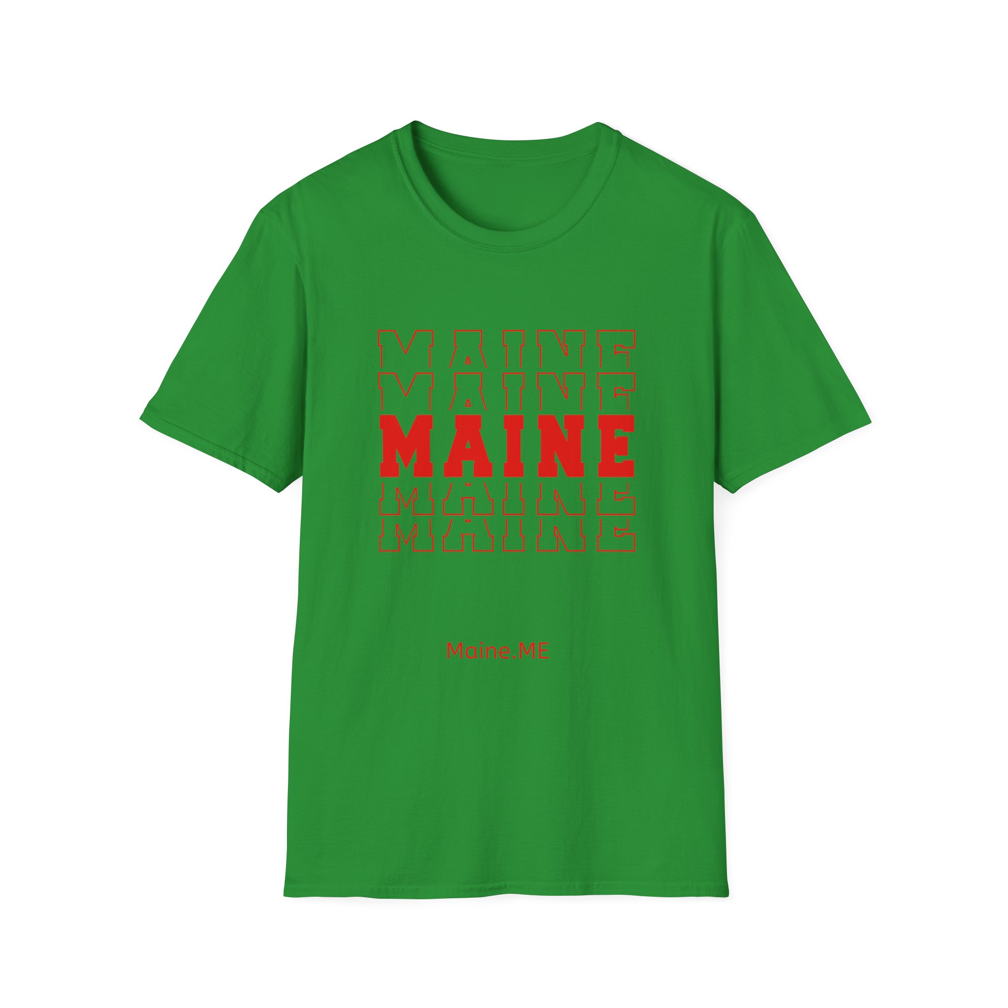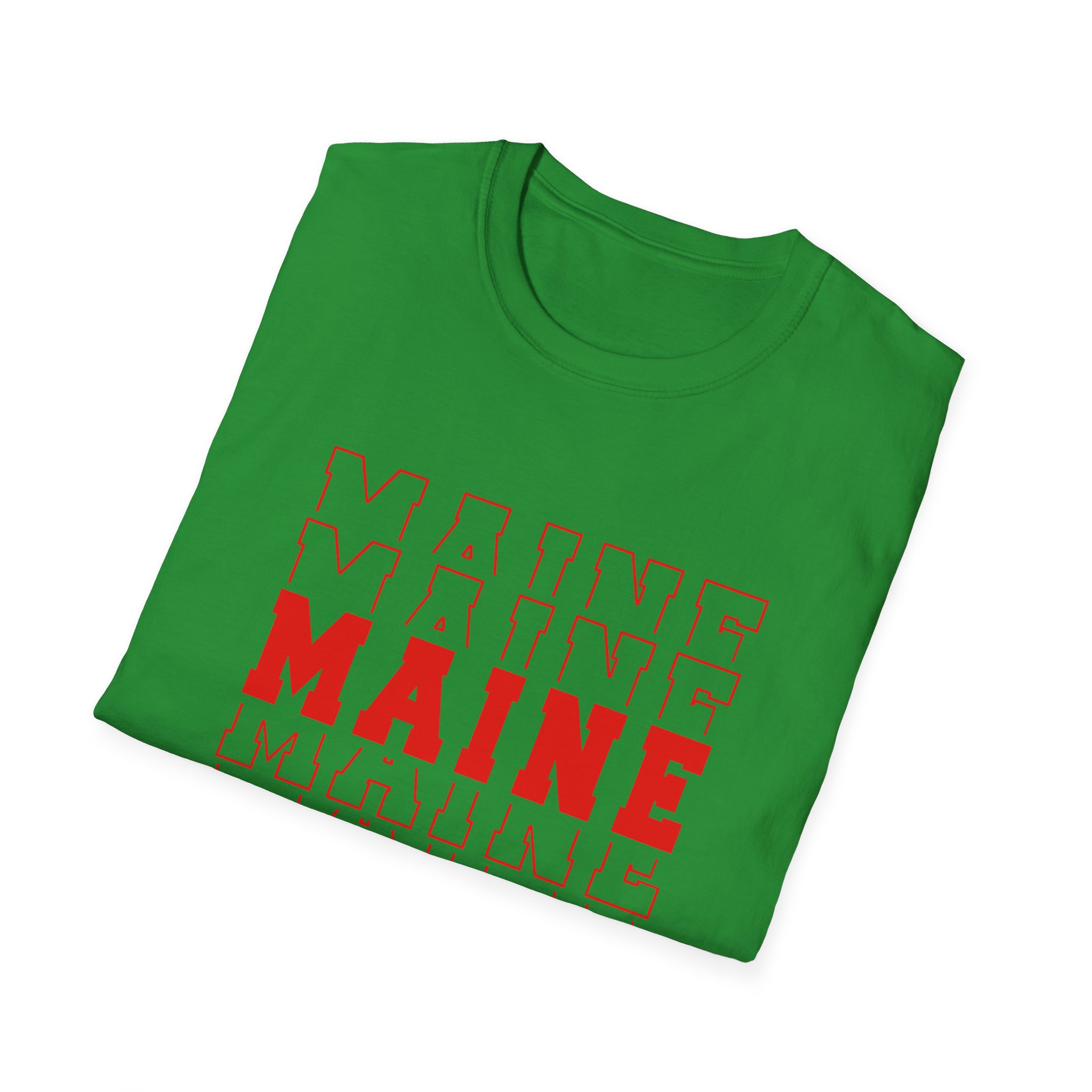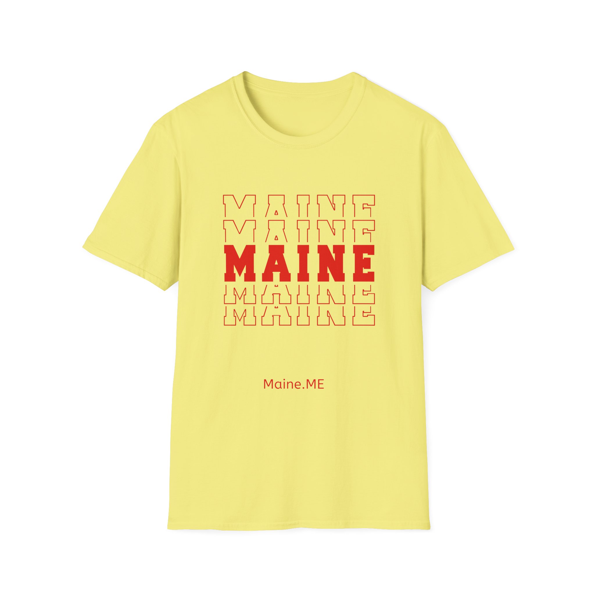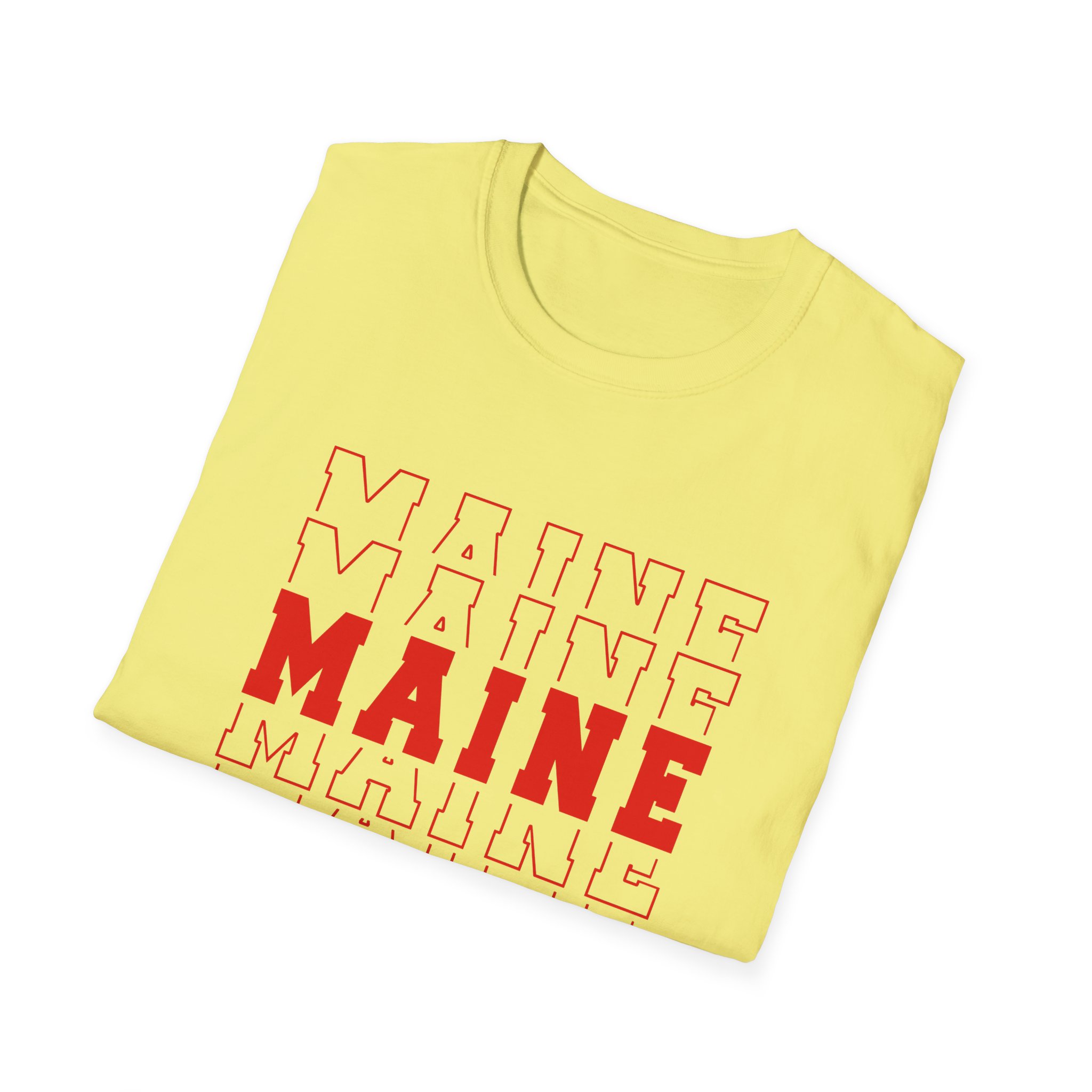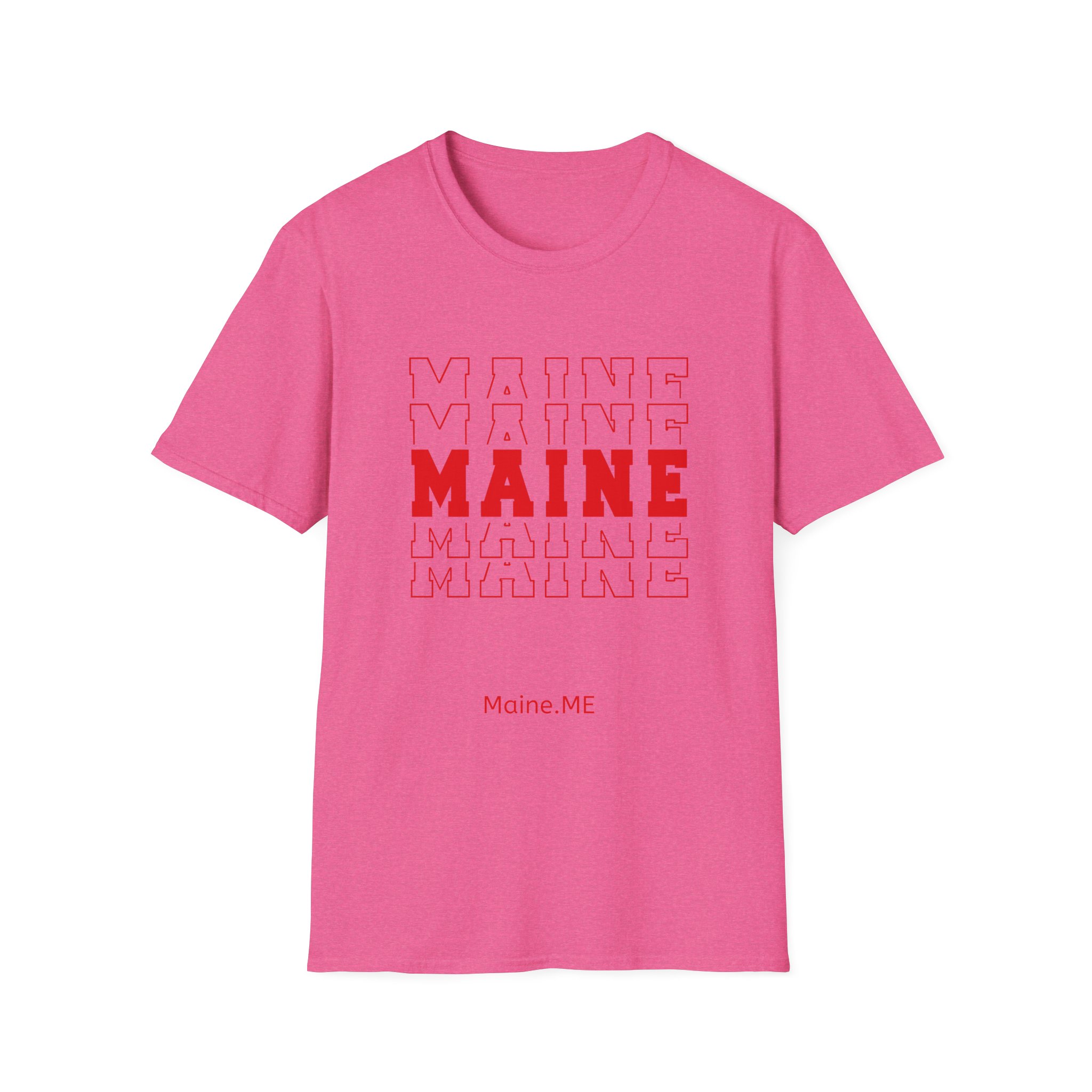 Stacked MAINE Red Words on Gildan Softstyle® 64000 redefines casual comfort with a modern unisex cut and ultra-soft materials. Solid colors are 100% cotton, while heathers and sport grey use polyester blends for added durability. Shoulders are reinforced with twill tape, there are no side seams for a smoother fit, and the ribbed-knit collar helps prevent curling. Whether for printing or everyday wear, the Gildan 64000 stands out as a dependable wardrobe staple.