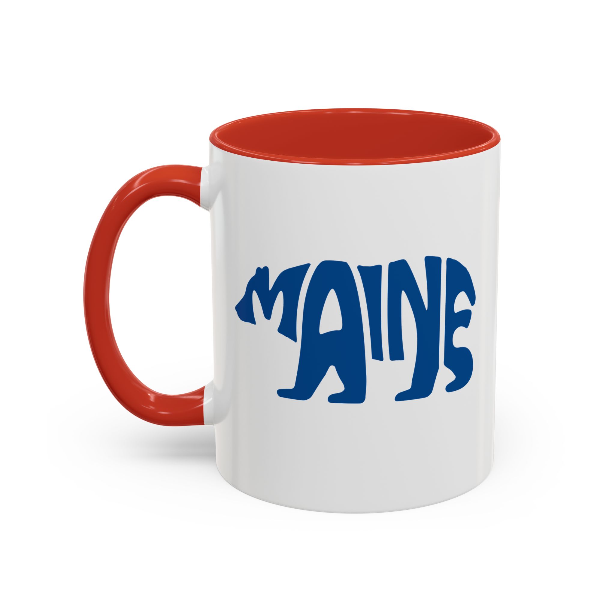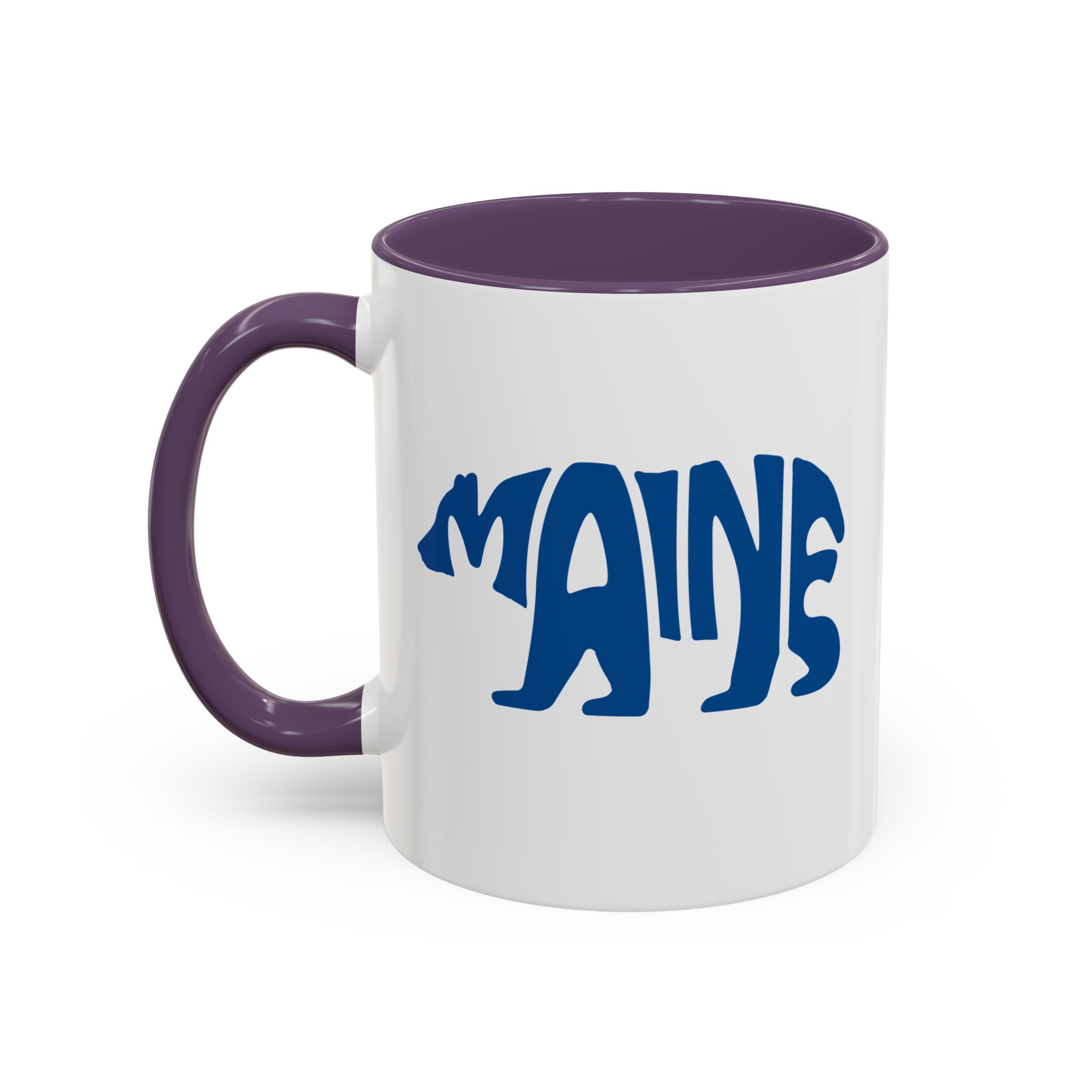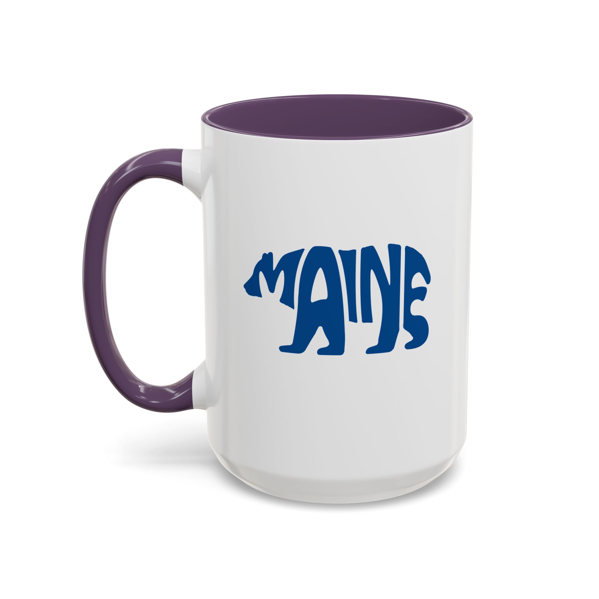 Two Sided Maine.ME Bear in Blue accented ceramic mug with the well known Bumper Sticker Design on opposite Side. This mug brings the perfect blend of style and functionality to elevate your coffee or tea ritual. Available in two generous sizes, 11oz (0.33 l) and 15oz (0.44 l), this mug offers ample space for your favorite brew. Made with white ceramic and sporting a sleek glossy finish with eye-catching contrast, this mug is a bliss both to use and to look at. The ergonomic C-shaped handle provides a comfortable grip, while the lead and BPA-free construction guarantee peace of mind with every sip.