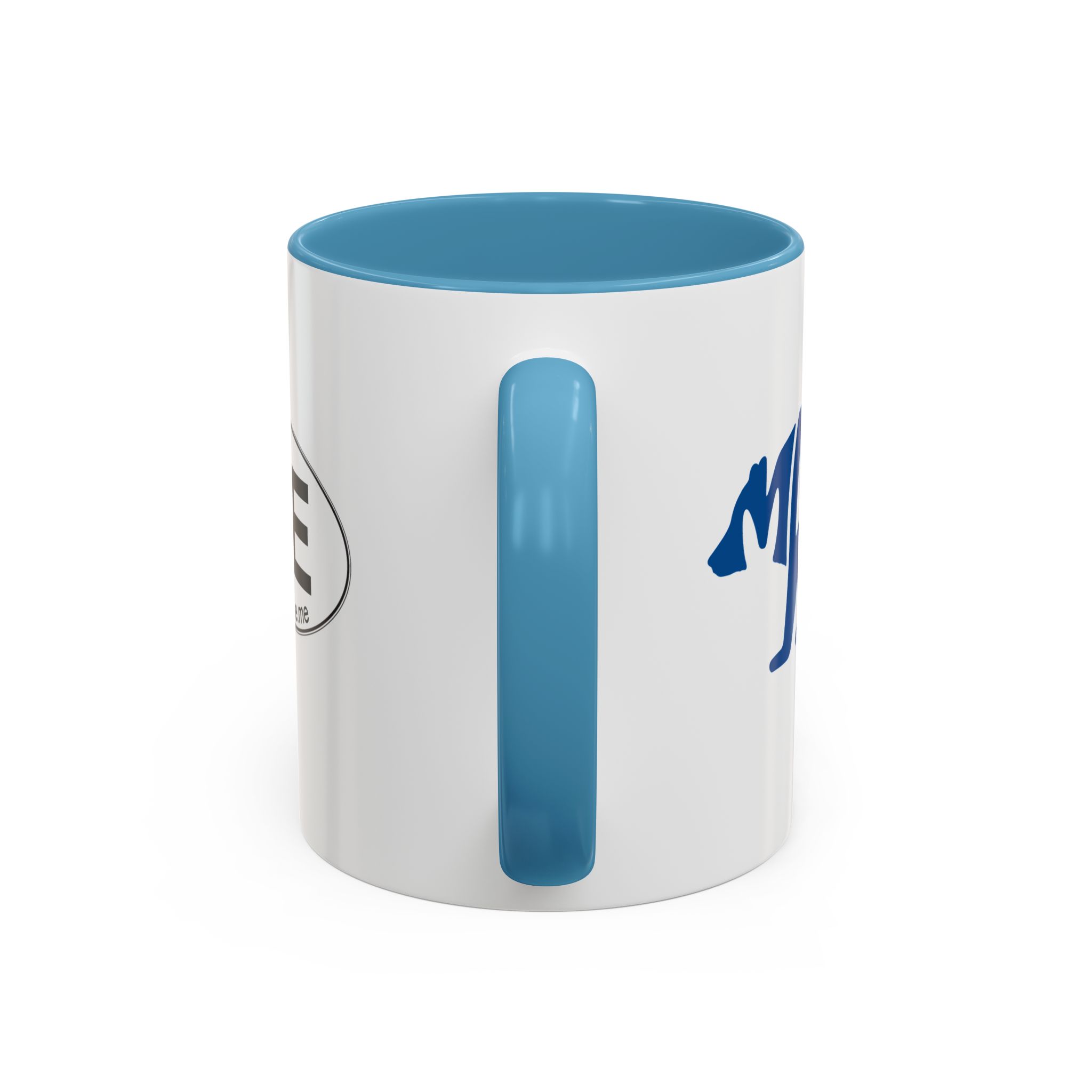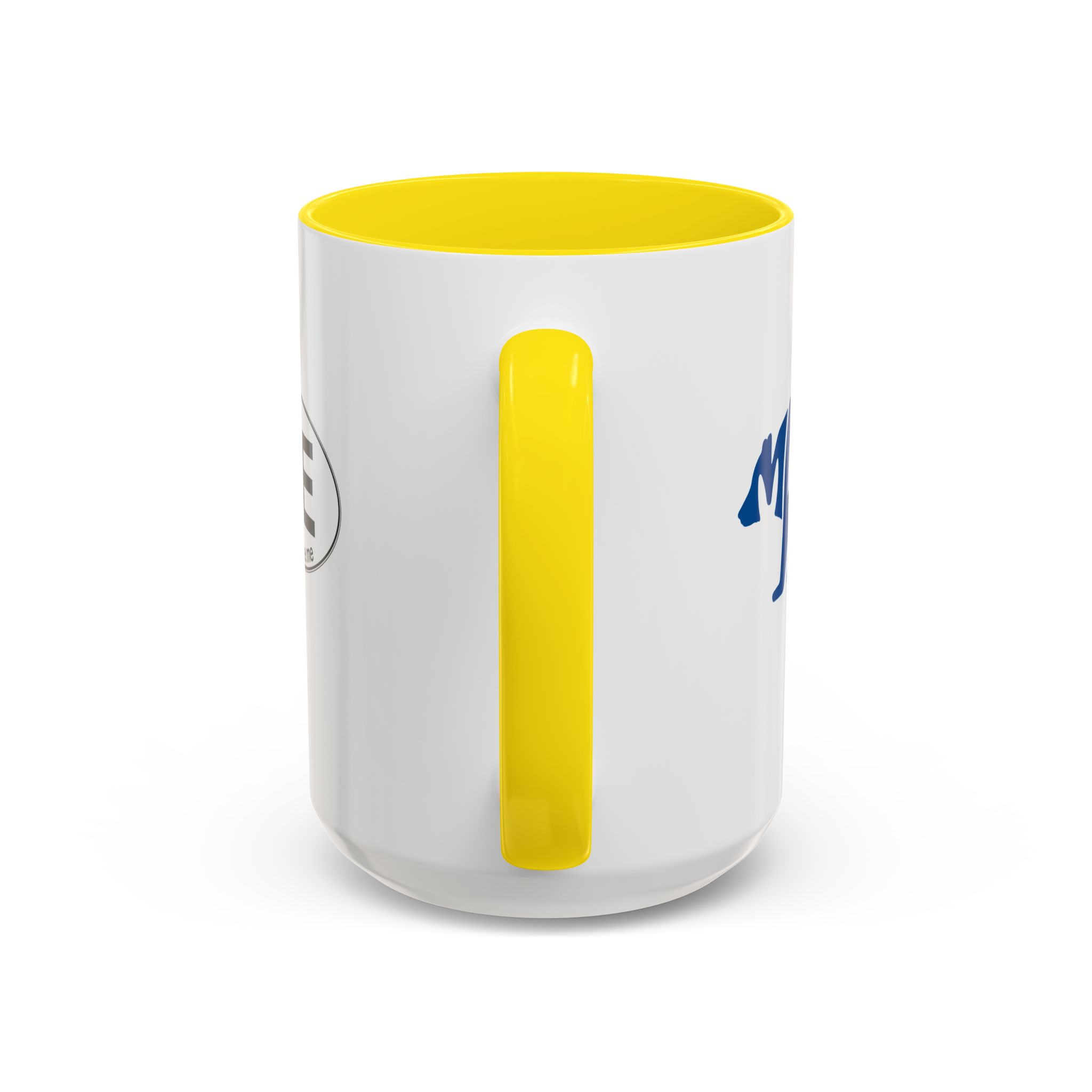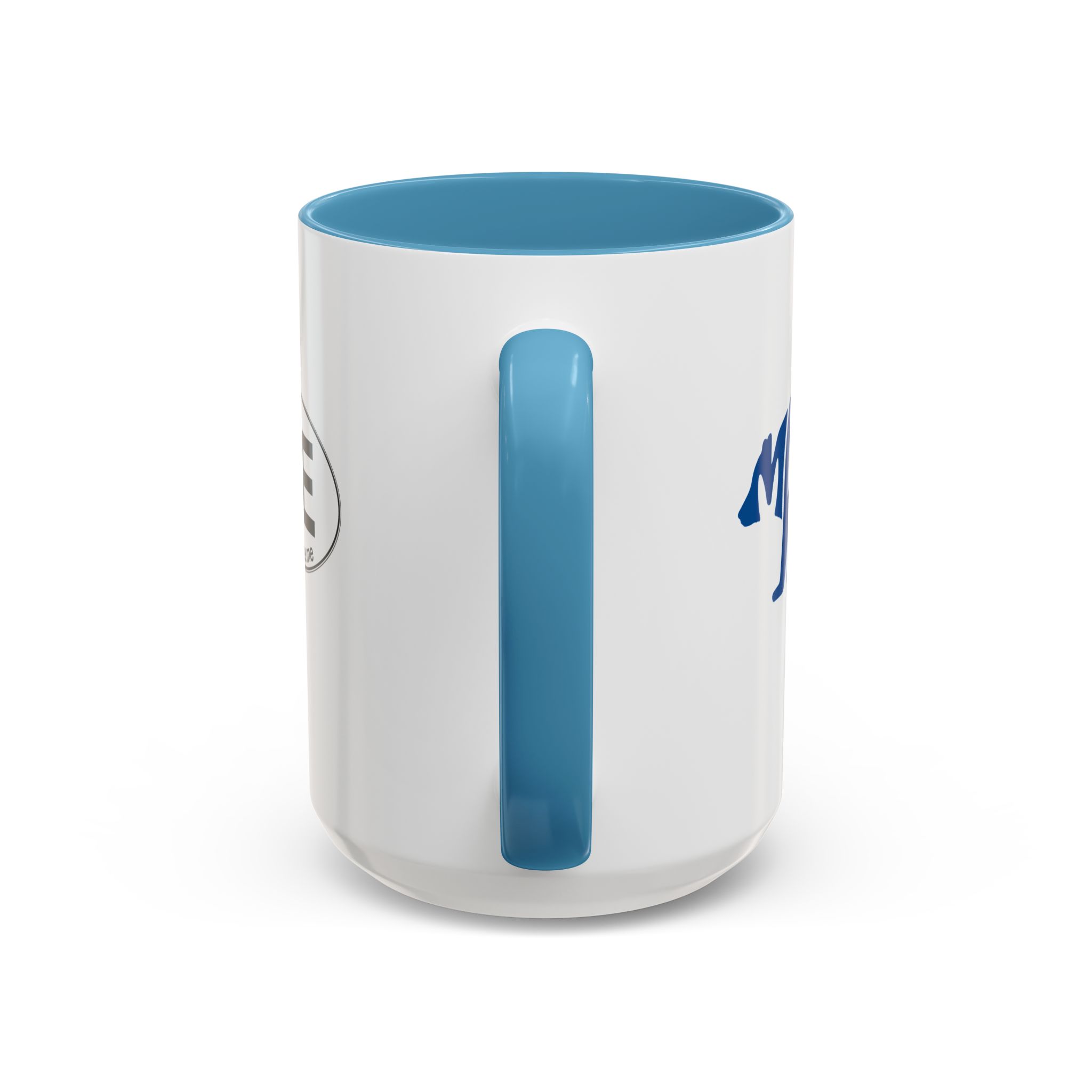 Two Sided Maine.ME Bear in Blue accented ceramic mug with the well known Bumper Sticker Design on opposite Side. This mug brings the perfect blend of style and functionality to elevate your coffee or tea ritual. Available in two generous sizes, 11oz (0.33 l) and 15oz (0.44 l), this mug offers ample space for your favorite brew. Made with white ceramic and sporting a sleek glossy finish with eye-catching contrast, this mug is a bliss both to use and to look at. The ergonomic C-shaped handle provides a comfortable grip, while the lead and BPA-free construction guarantee peace of mind with every sip.